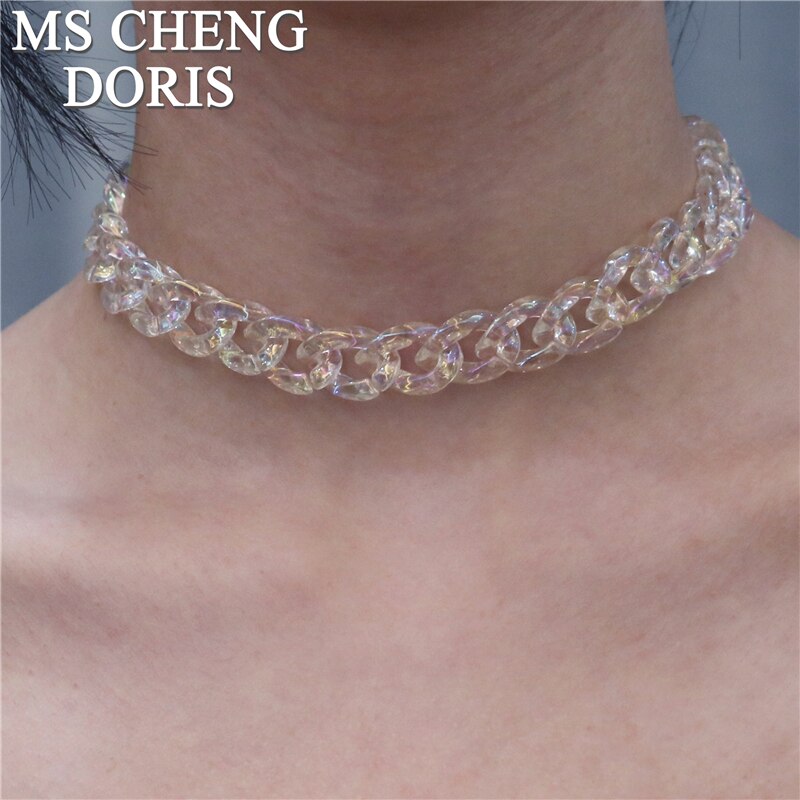 Acrylic Chain Necklace Bohemian Summer Plastic Clear Chain Collar Necklaces & Pendants Women Jewelry Drop Shipping