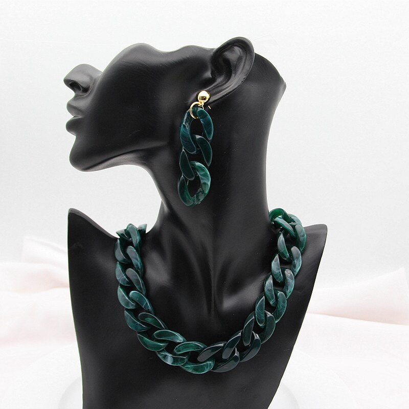 Acrylic Long Chain Necklace Bohemian Chunky Plastic Choker Collar Necklace Pendant For Women Bijoux Jewelry Accessories