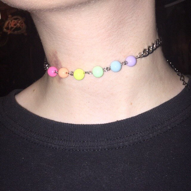 Acrylic Women Necklace Chain Punk Bead Splice Chains and Necklaces for Women Kpop Goth Gothic Jewelry Accessories