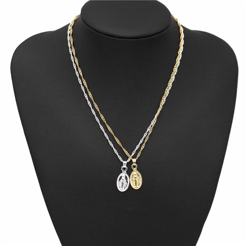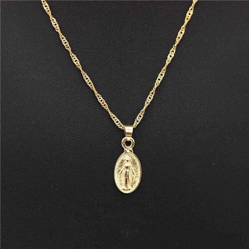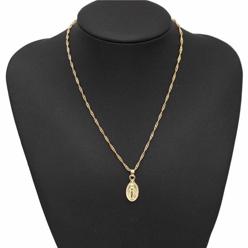ADOLPH Star Jewelry Trendy Virgin Mary Choker Necklace Dainty Gold Medallion Pendants Necklaces Mother Mary Accessories