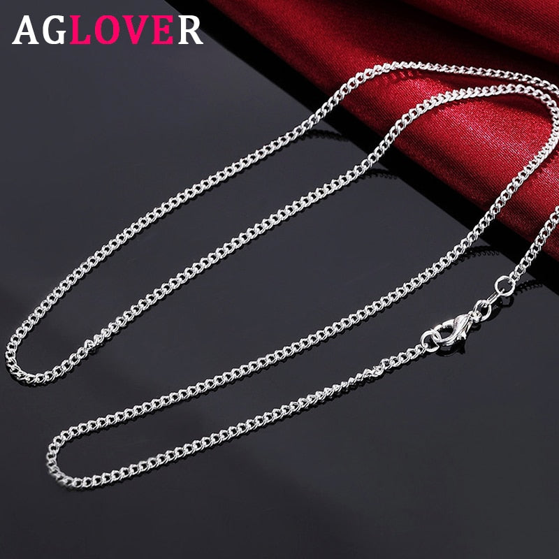 AGLOVER 925 Sterling Silver 16/18/20/22/24/26/28/30 Inch 2mm Side Chain Necklace For Woman Man Charm Jewelry Gift