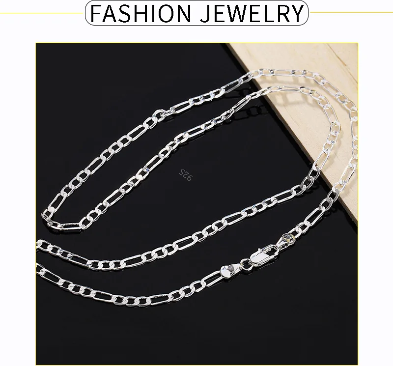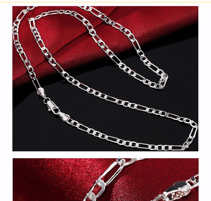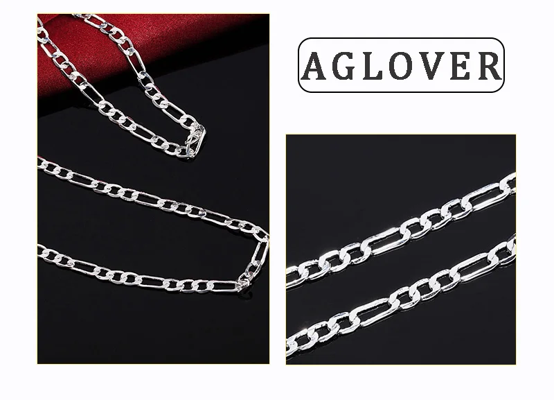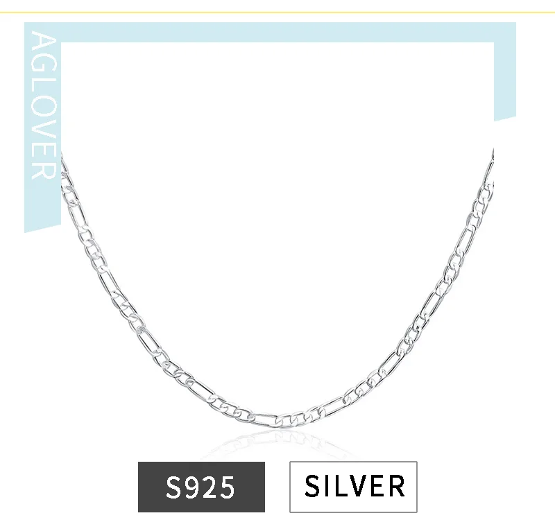 AGLOVER 925 sterling silver 16/18/20/22/24/26/28/30 inch 4MM Link Necklace For Woman Man Wedding Jewelry Gift