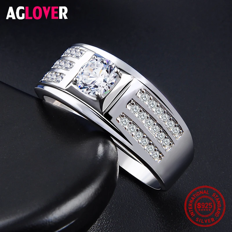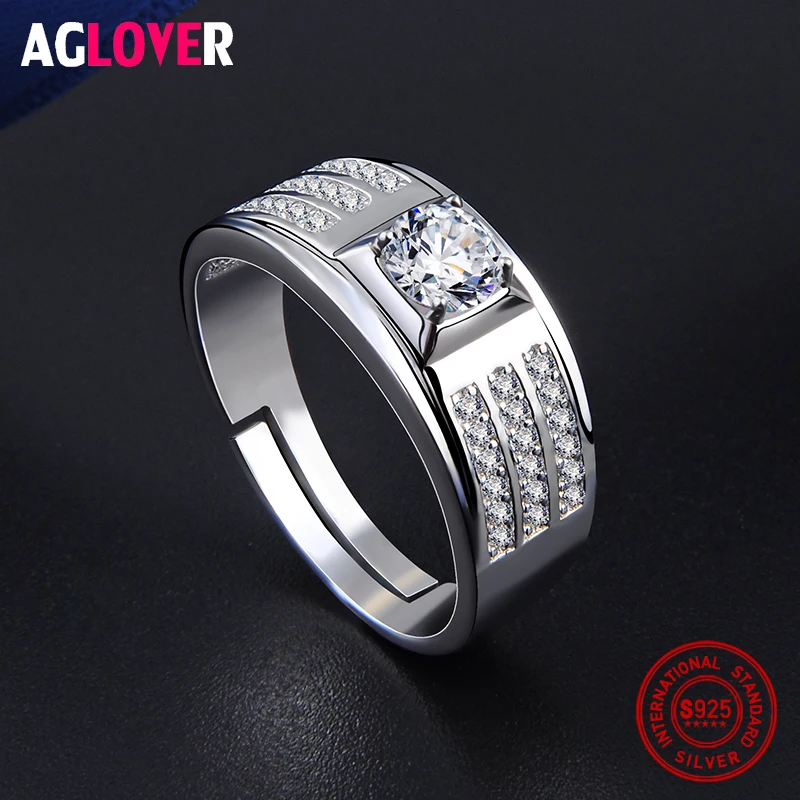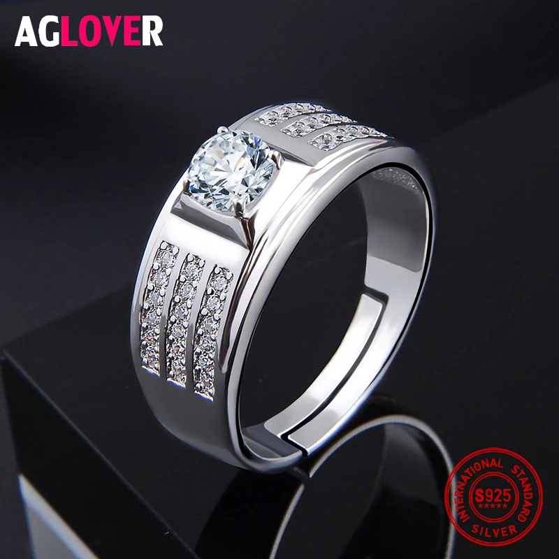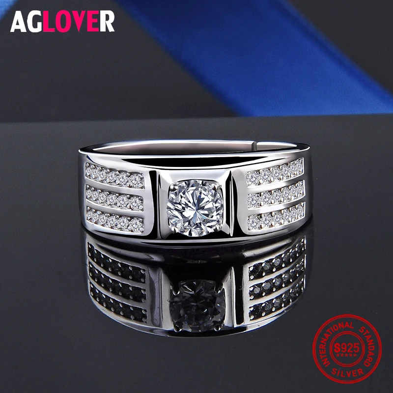 Brand Domineering Men Wedding Engagement Rings 100% Solid 925 Sterling Silver Jewelry Zircon CZ Ring Fine Jewelry