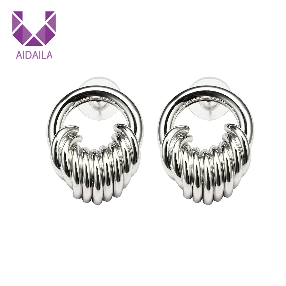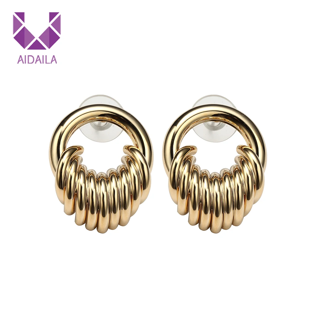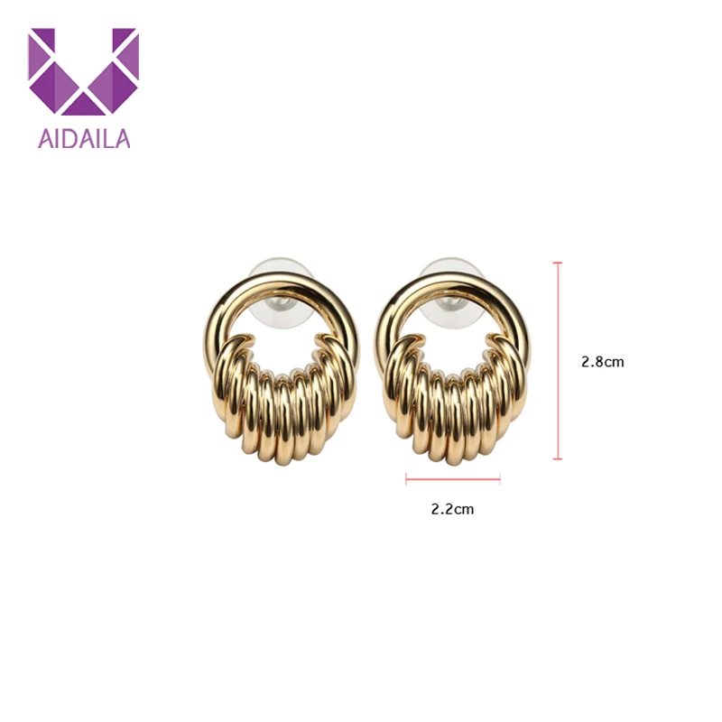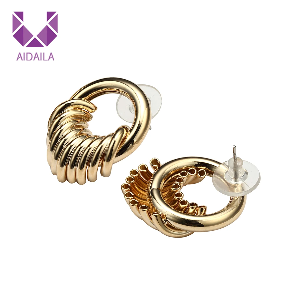 AIDAILA 1 pair stud earrings copper metal Top Design Simple Multi-layer Stud Earrings High Quality