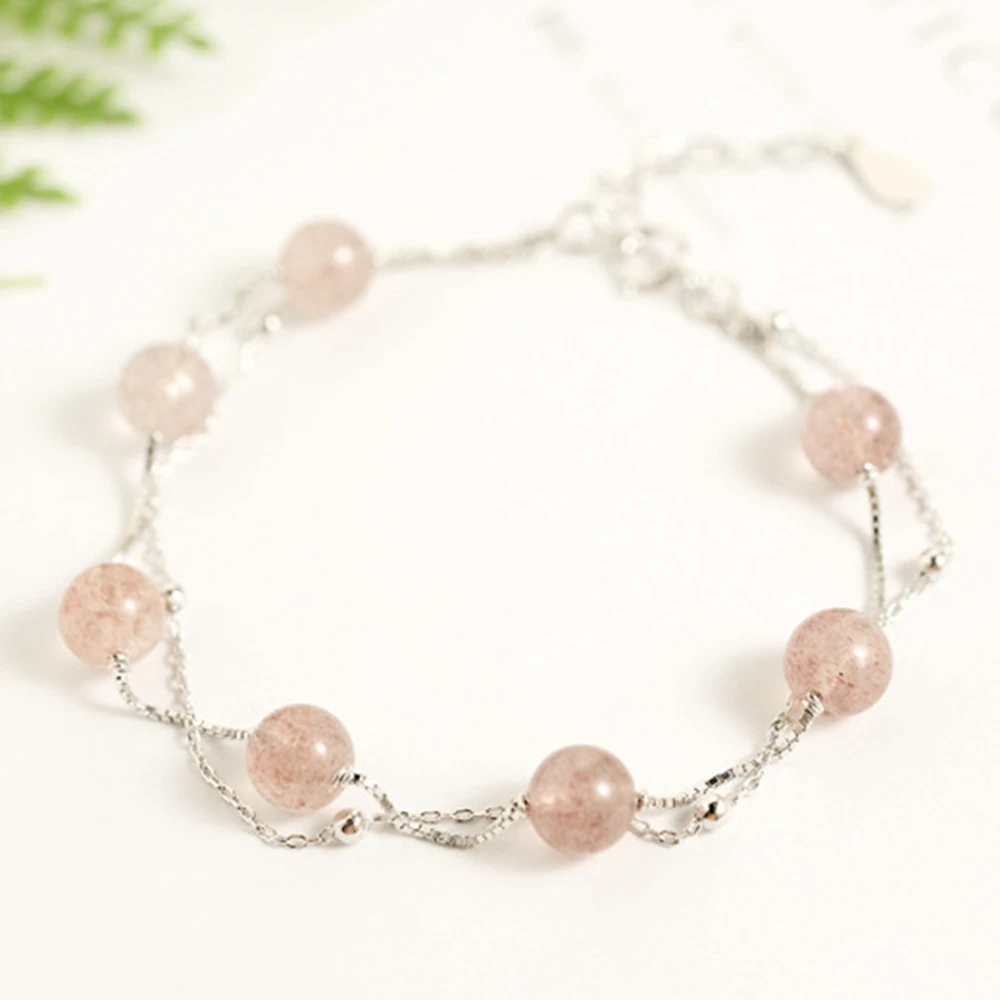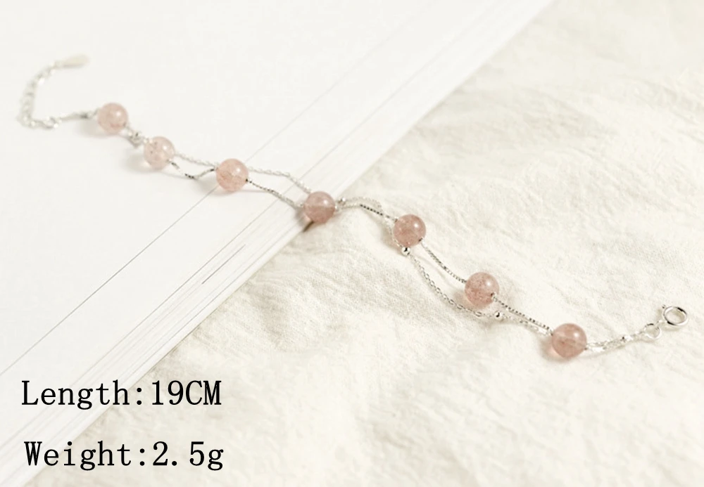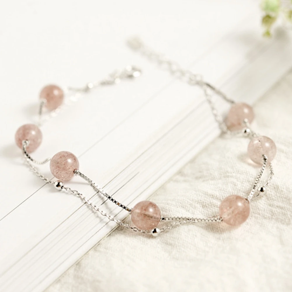 Brand New Women's Bracelet Strawberry Quartz Gemstone Real 925 Silver Jewelry Fresh Beauty Gift Female Bracelets 2020