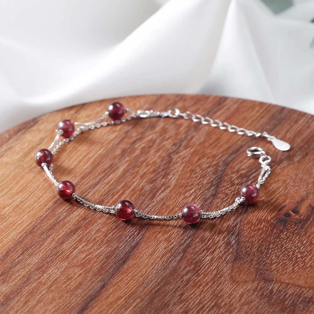 Brand Women's Bracelet Nature Garnet S925 Silver Jewelry Girls Cute Bracelets Bracciali Donna 2020 Korea Style Pulseiras