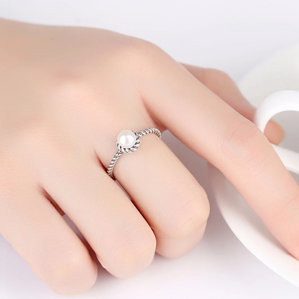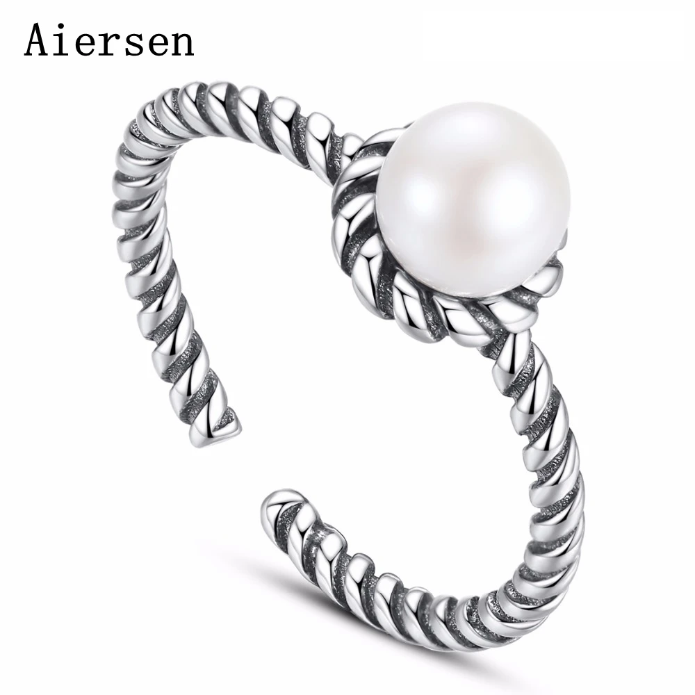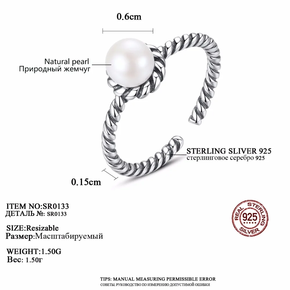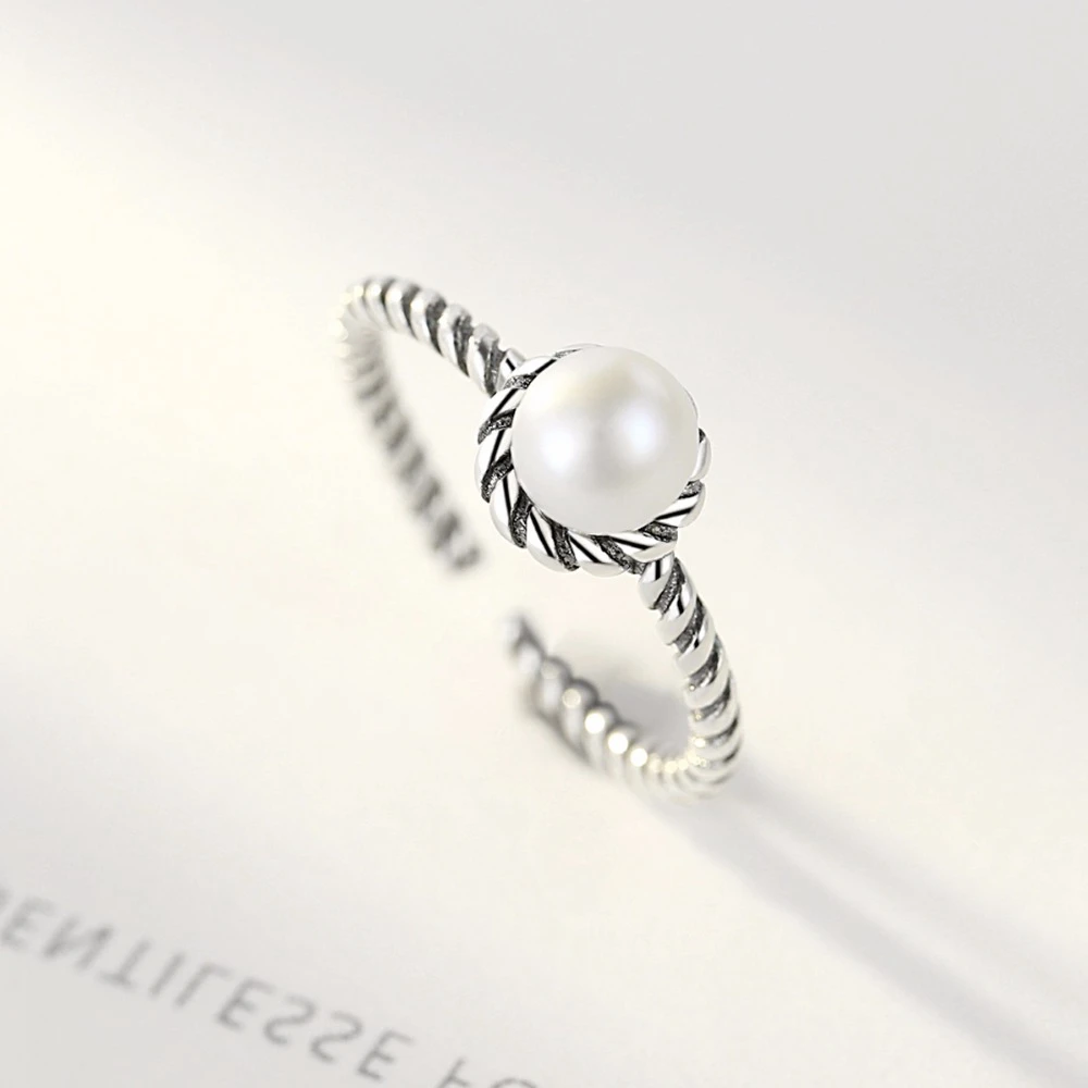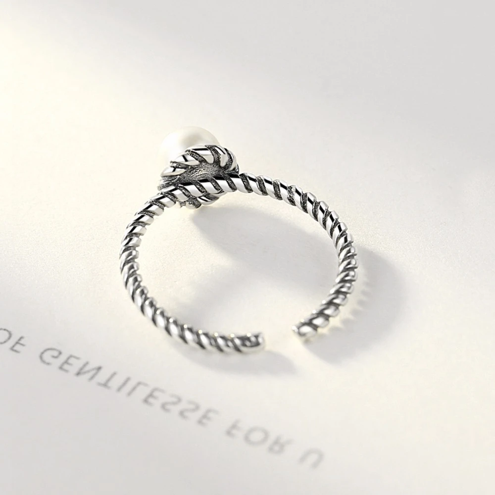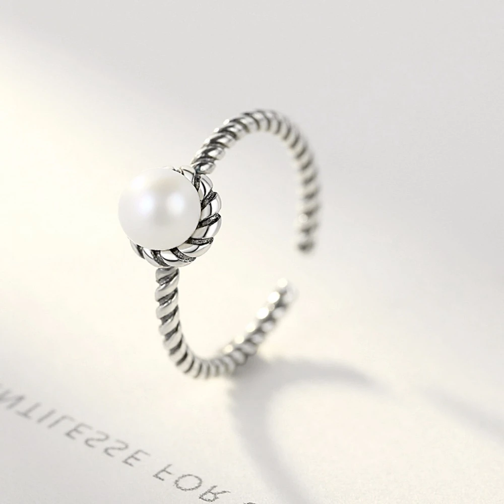Korean Retro Whorl Women's Ring Fashion Thai Silver 925 Resizeable Ring Female Pearl Screw Thread Design Anello Donna