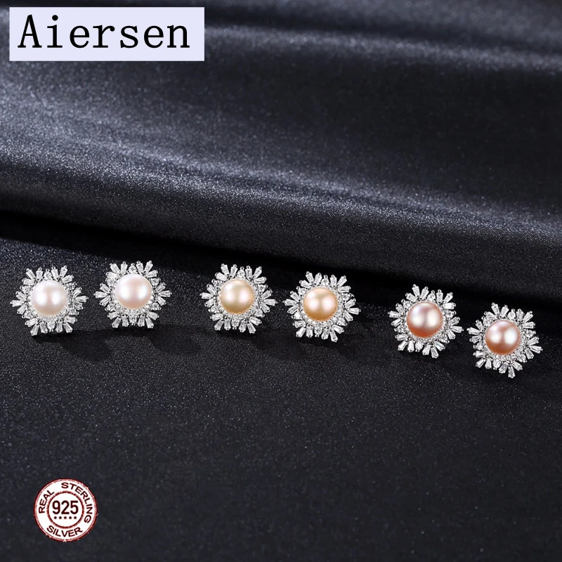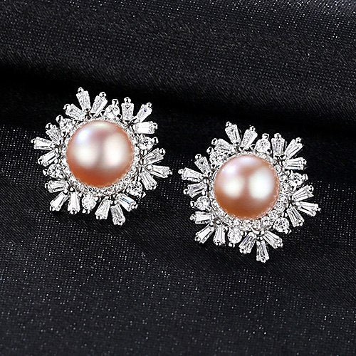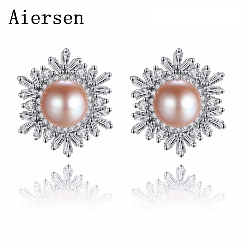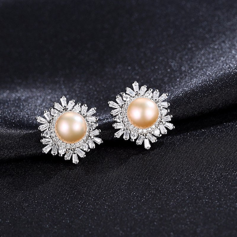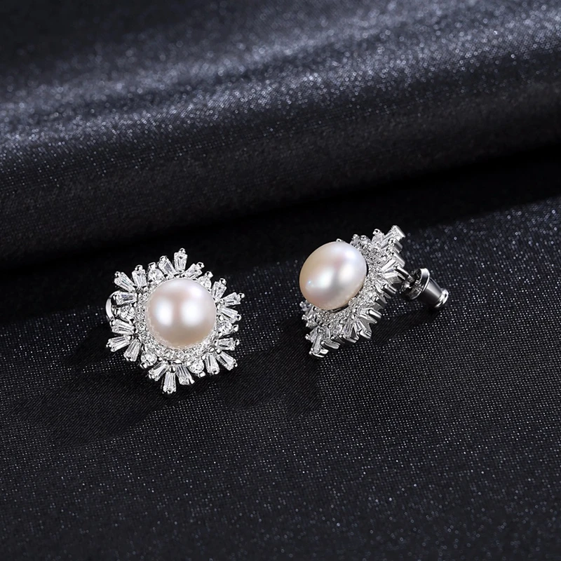 Luxurious Women's Stud Earrings Female Snowflake Earring 925 Sterling Silver Jewelry Natural Pearl for Women Aretes 2020