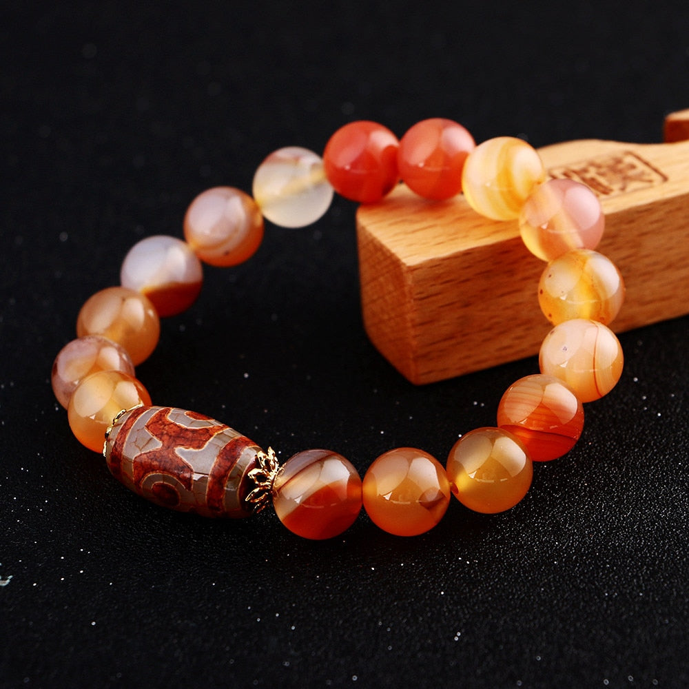 Men Women Nature Dzi Beads Bracelets Lucky Bracelet Silver 925 Fashion 8mm-14mm Opal Agate Obsidian Handmade Jewelry