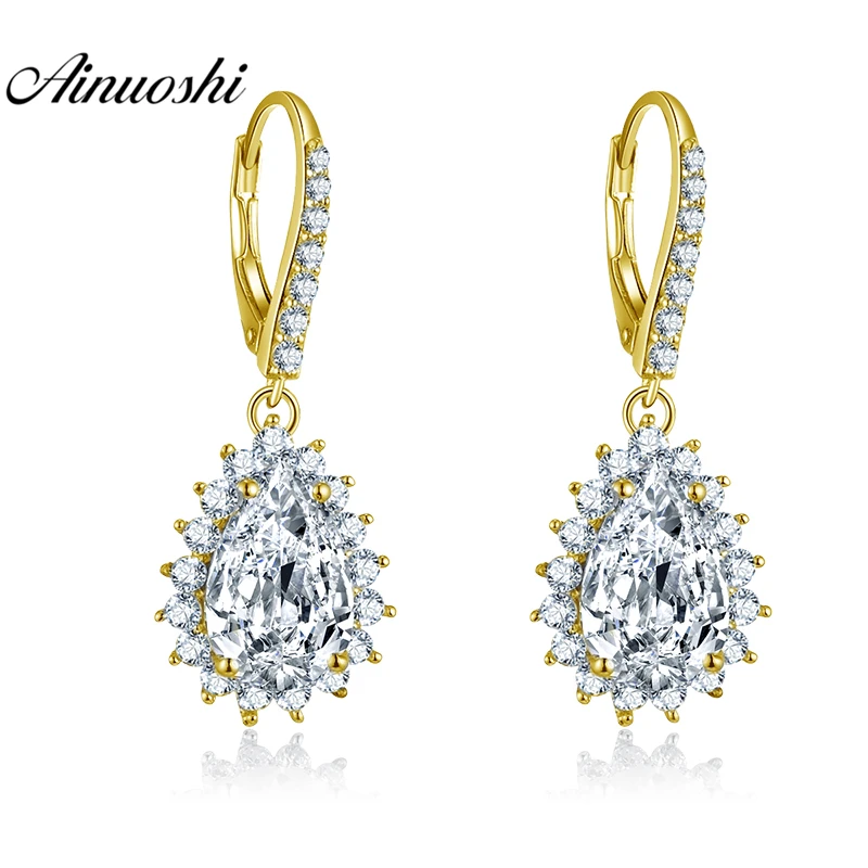 10K Solid Yellow Gold Drop Earring Women Fine Jewelry 6 Carat Pear Cut Purple Color Droplet Earring Click Back Earring