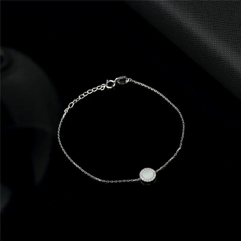 Mini 18K Pure 750 Gold Chain Bracelet 0.068ct Real Diamond 0.2ct Round White Onyx Bracelet Wedding Jewelry Girl Gift
