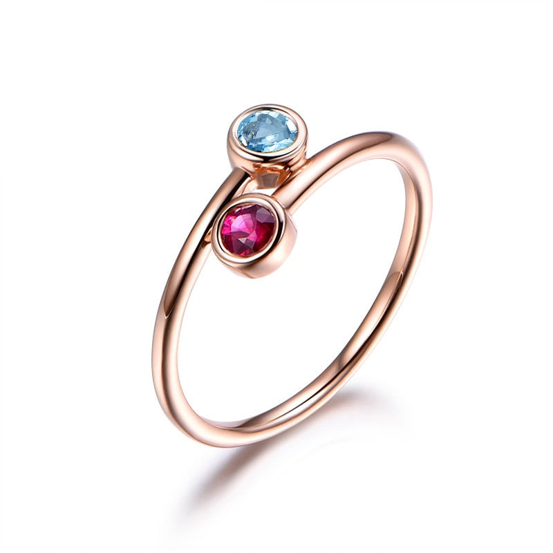 Natural Blue Topaz Ring 1ct Round Cut Gems Engagement Wedding Anniversary Jewelry Pure 925 Silver Rose Gold Color Ring