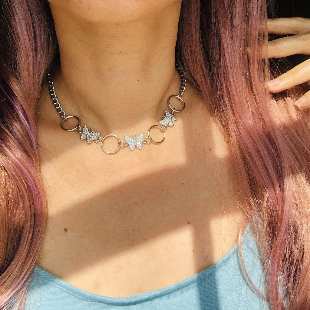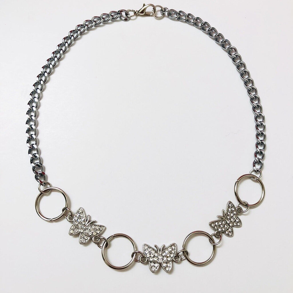 AliExpress Popular European and American Ins Super Fire Crystal Letter Pin Butterfly Clavicle Necklace Ornament