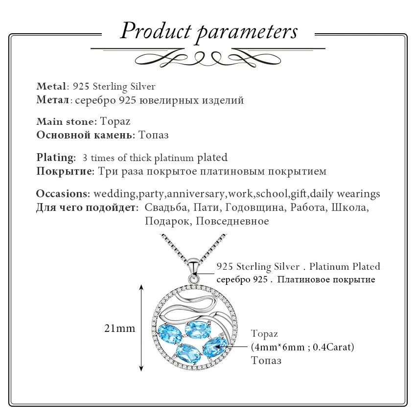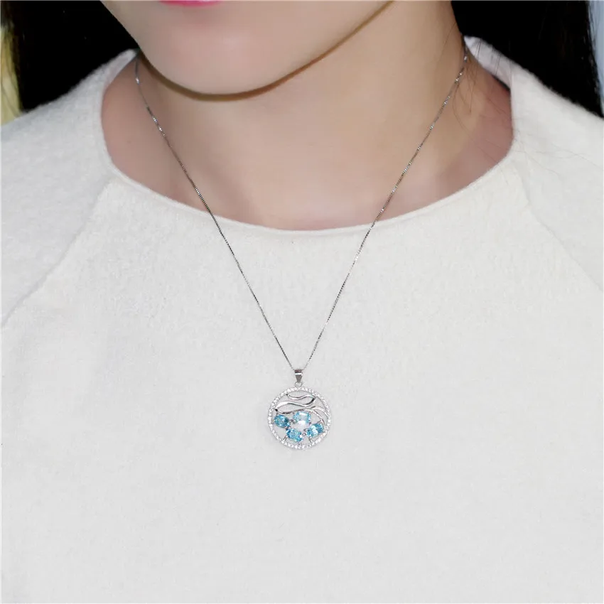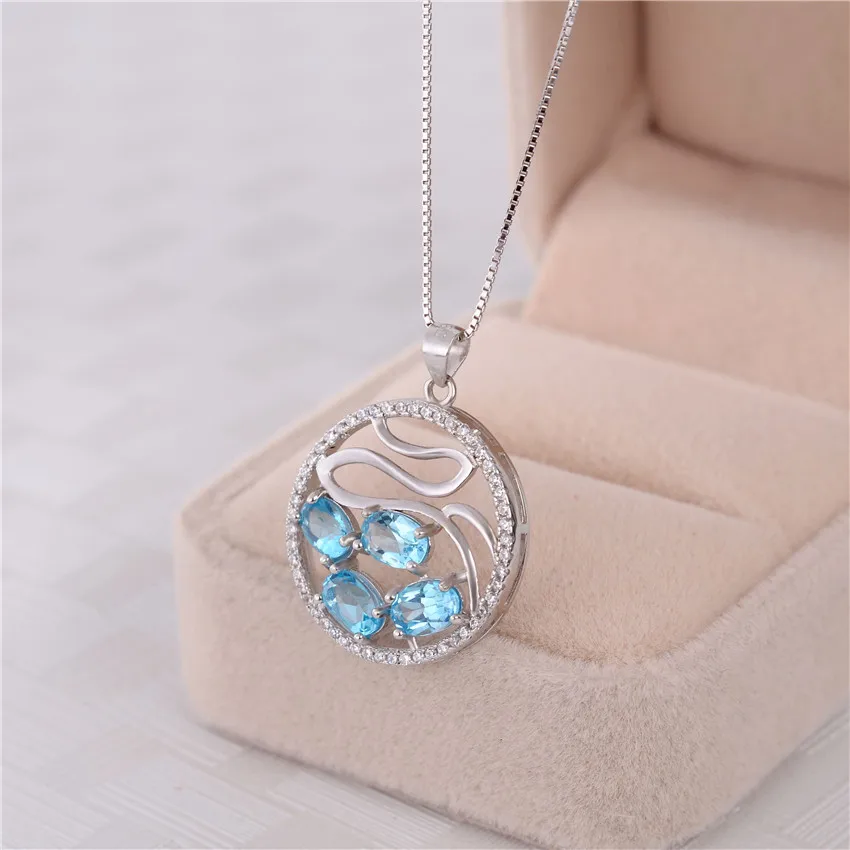 2020 4pcs 0.4ct Sky Blue Topaz Pendant Unique Natural 925 Sterling Silver Necklace Jewelry for Women with Chain Box CN019