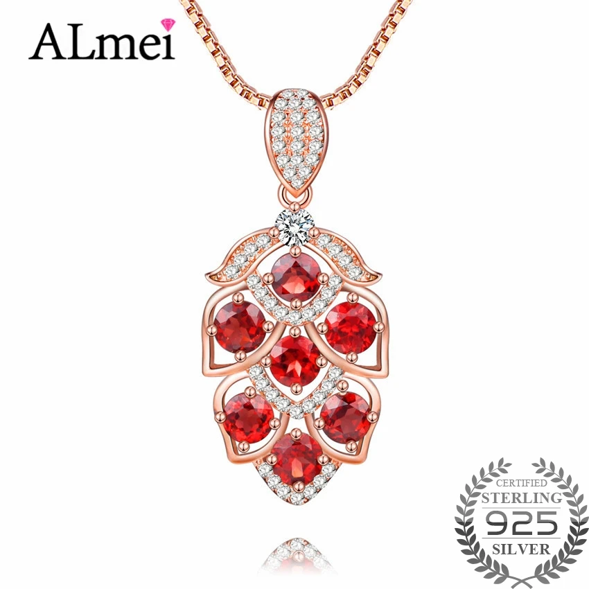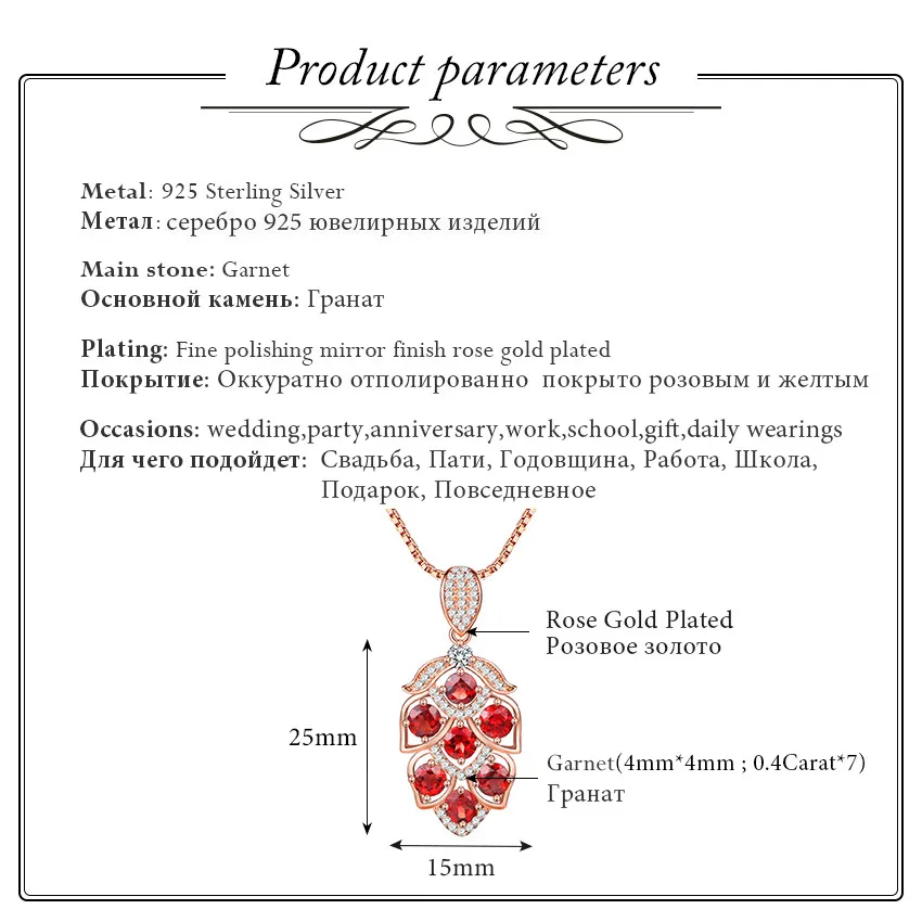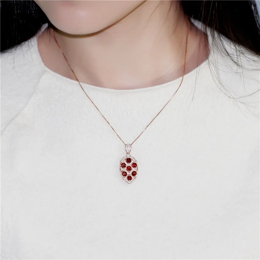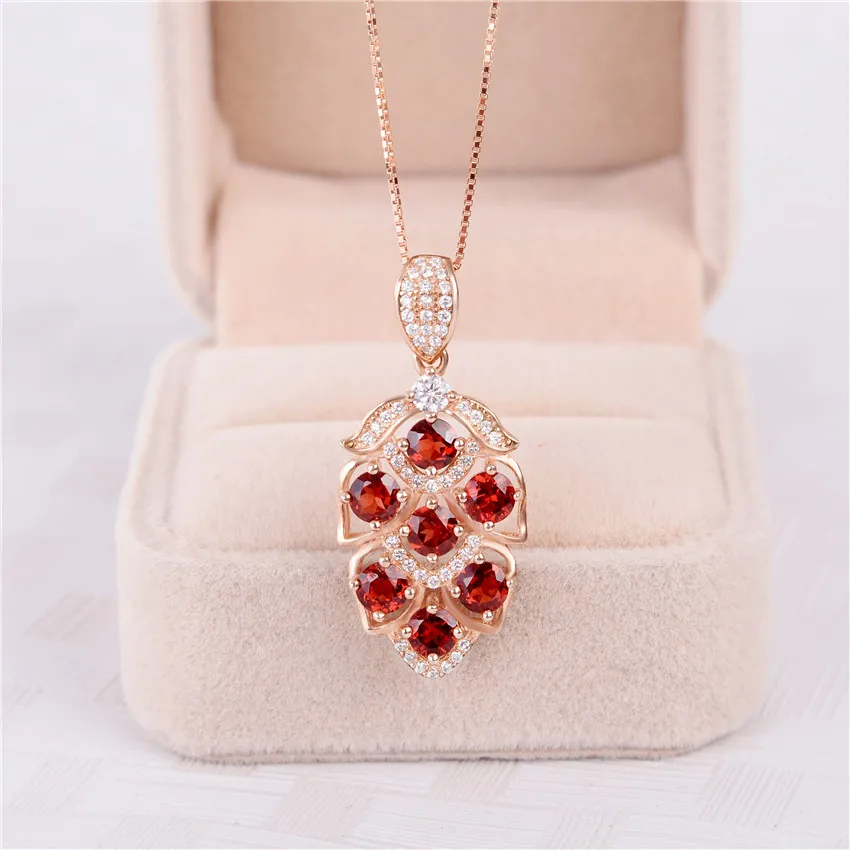 2020 Women 2.8ct Natural Garnet Red Flower Pendant 925 Sterling Silver Rose Gold Wedding Necklace Jewelry Chain Box CN006