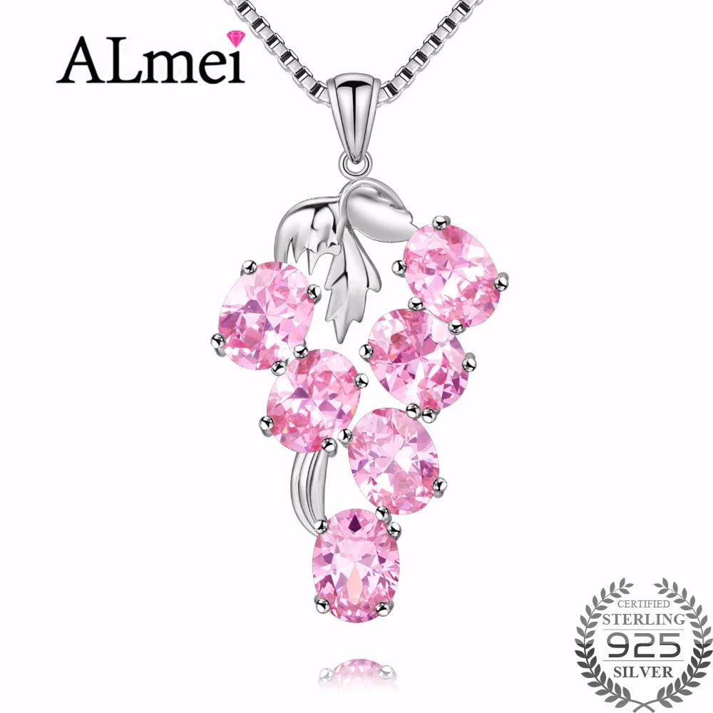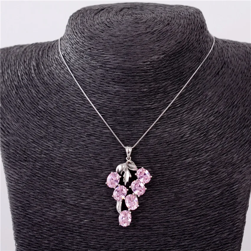 Pink Cubic Zirconia Grape Shape Pendant Genuine 925 Sterling Silver 6 Oval Zircon Fruit Summer Jewelry with Box CN014