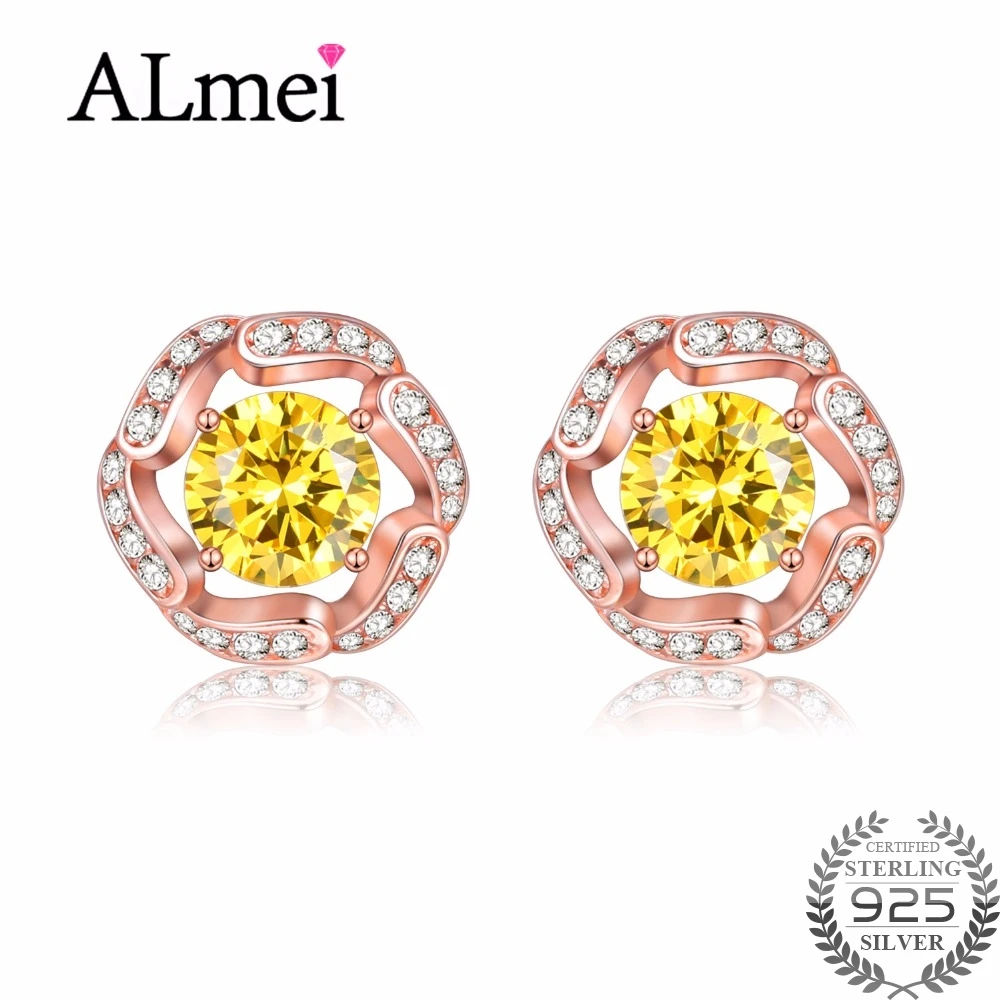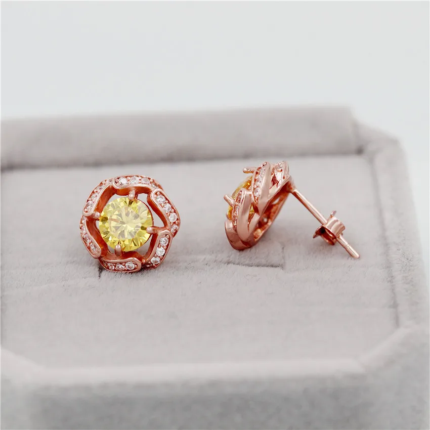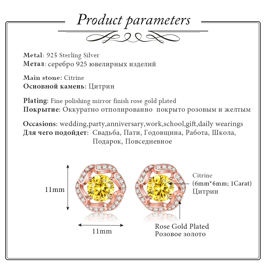 Yellow Citrine Wintersweet Titoni Rose Gold Color Flower Earrings 925 Sterling Silver Wedding Jewelry with Box 40% FR008