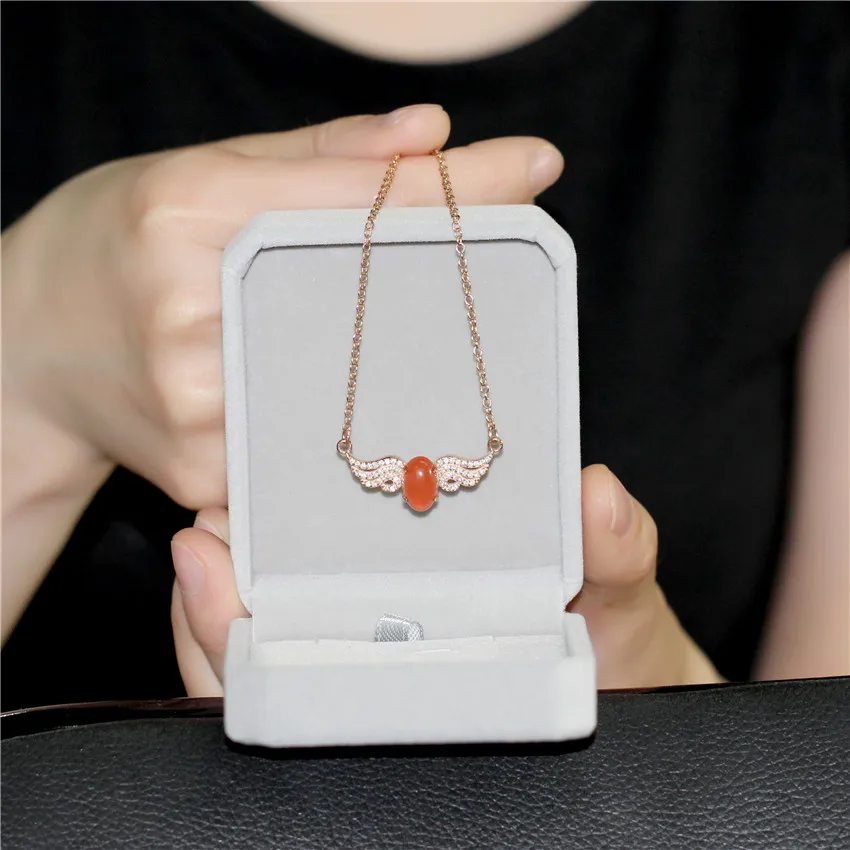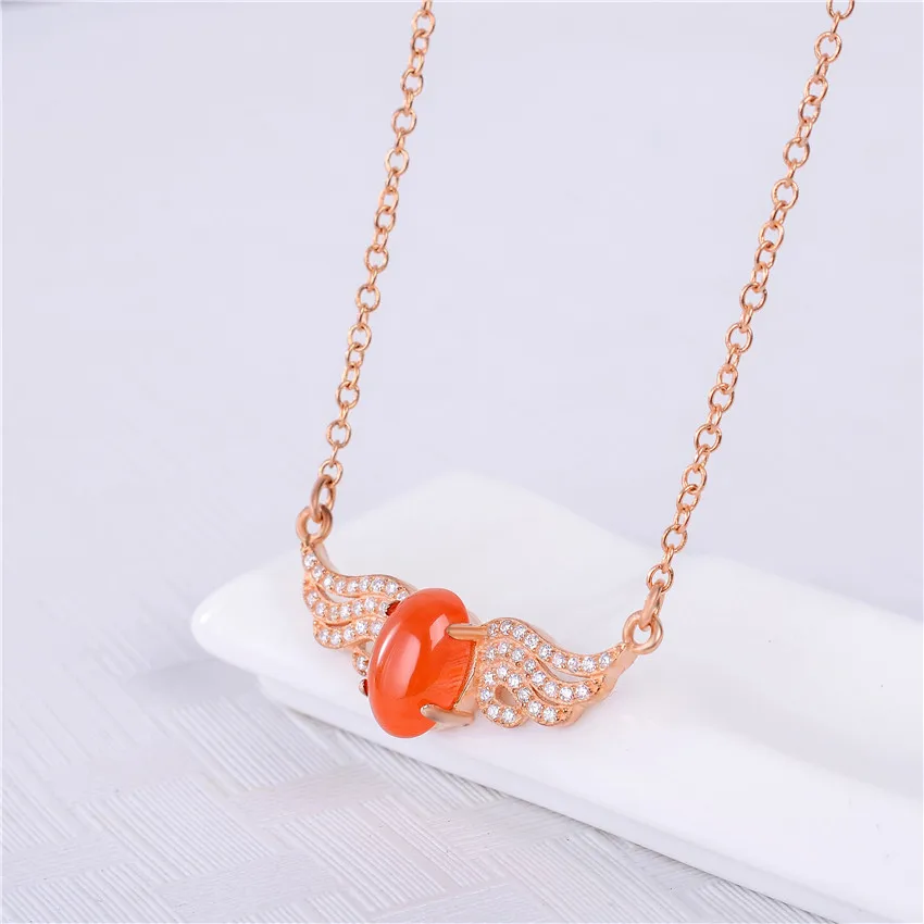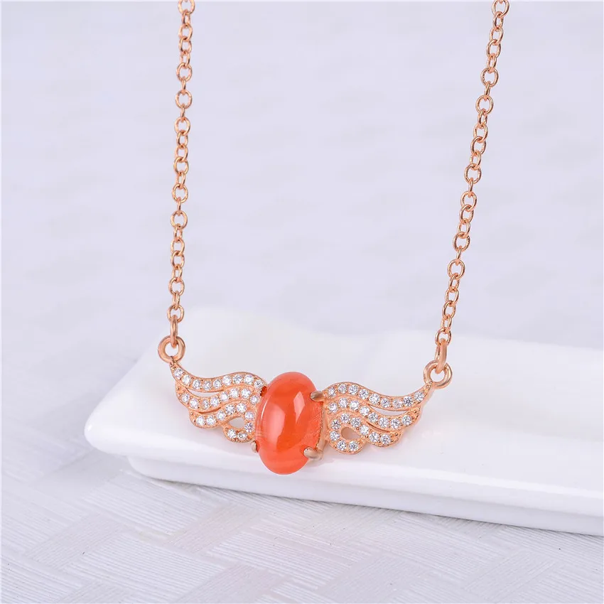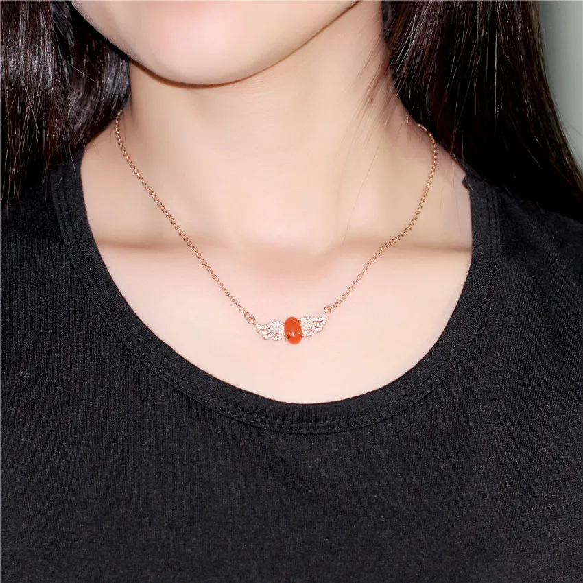 2ct Angel Wings Agate Beads Crystal Jewelry Silver 925 Rose Gold Color Pendant Necklace Dropshipping with Box 40% FN042