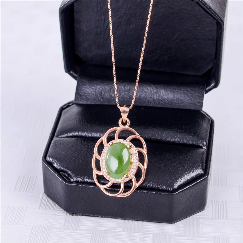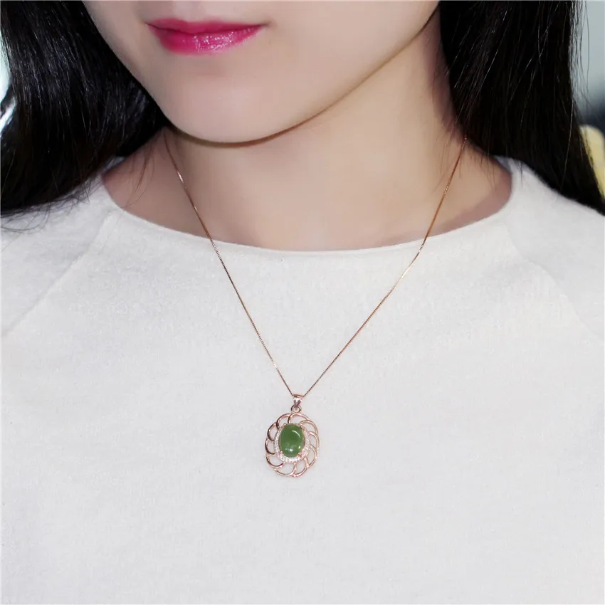 5ct Light Green Jasper Big Leaf Pendant & Necklace 925 Sterling Silver Women Vintage Jewelry Natural Stone Free Box FN074