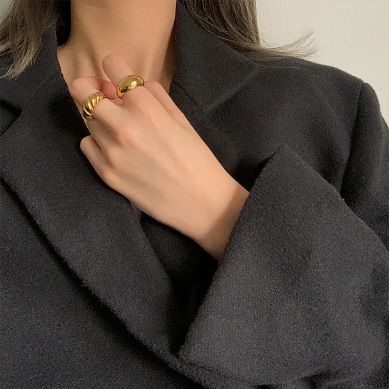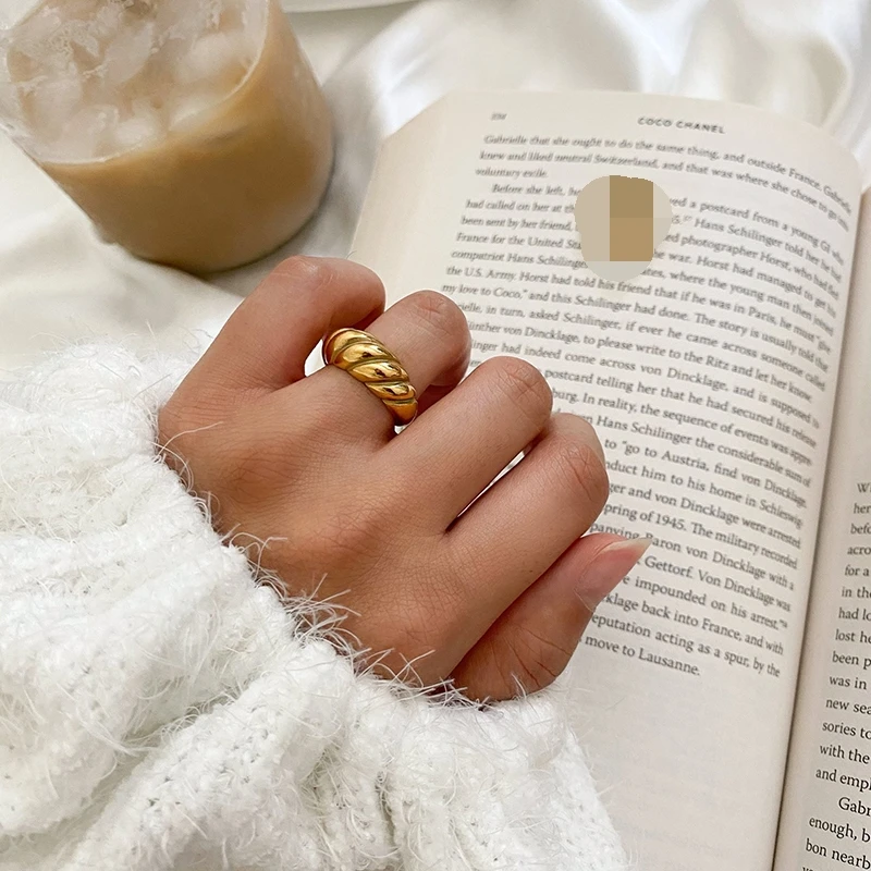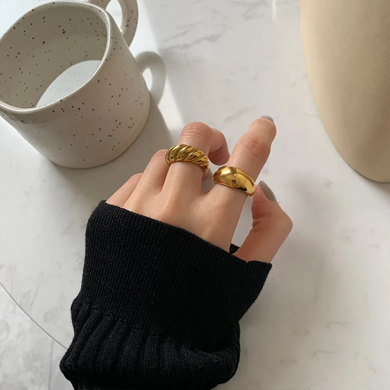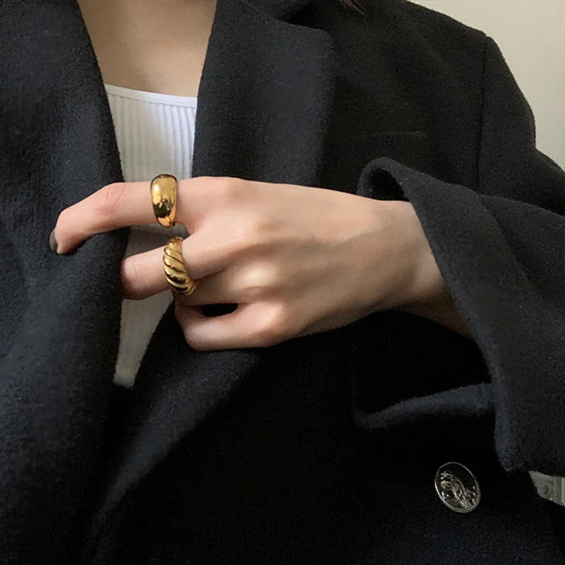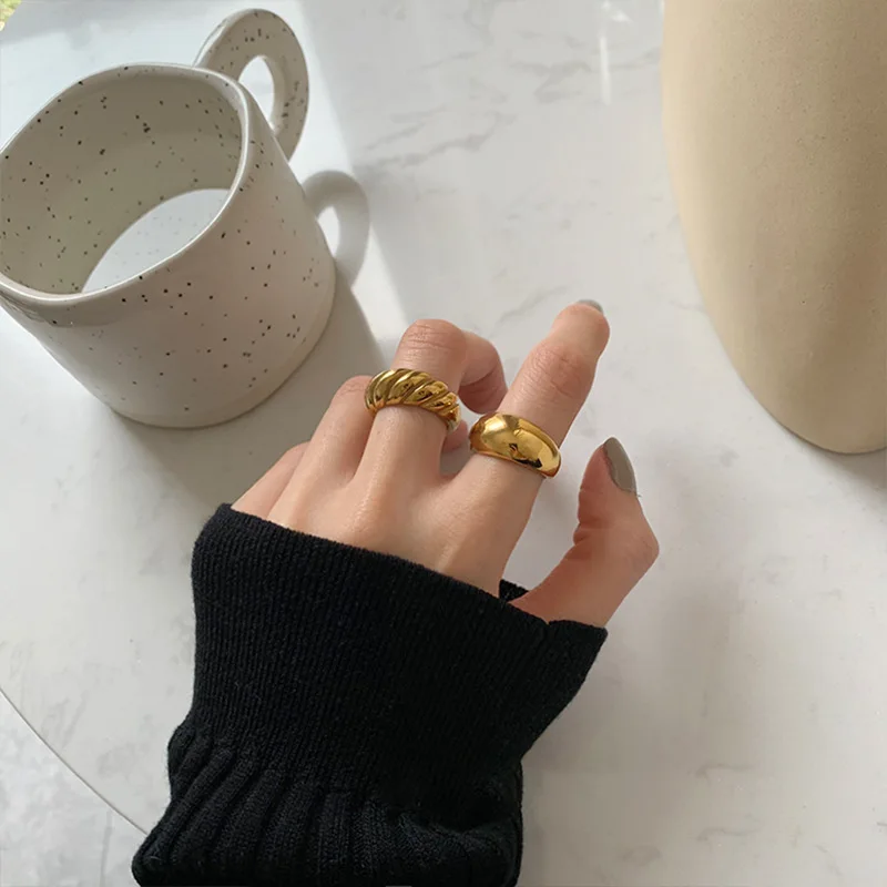 ANENJERY 925 Sterling Silver French Thick Golden Smooth Croissant Thread Ring for Women Light Open Ring