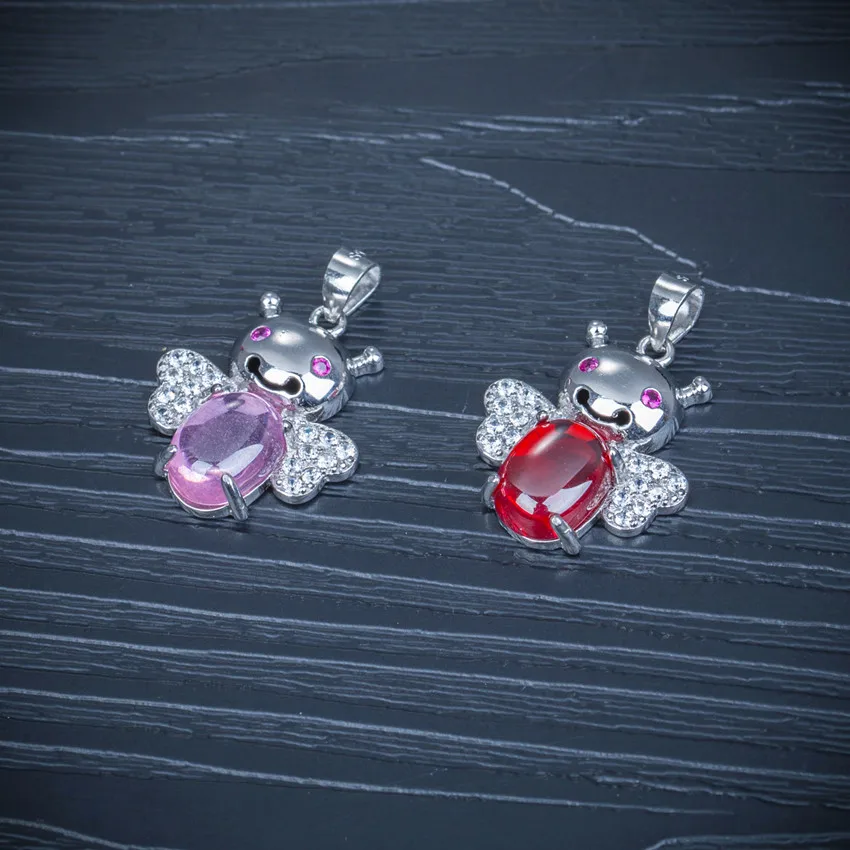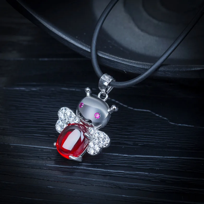 Angel Natural Stone Necklace 17x20mm Silver Necklace Long Fashion Jewelry For Women 2020 Garnet Pendants For Friends