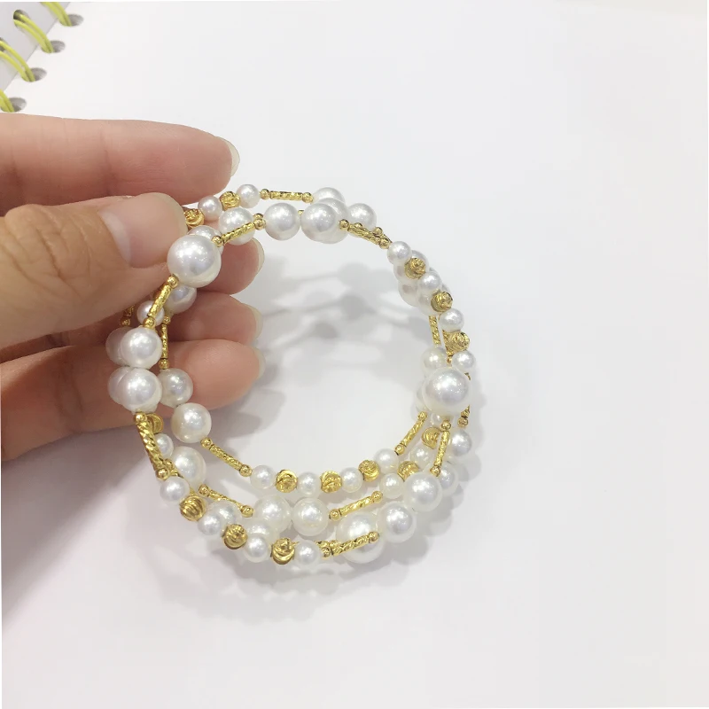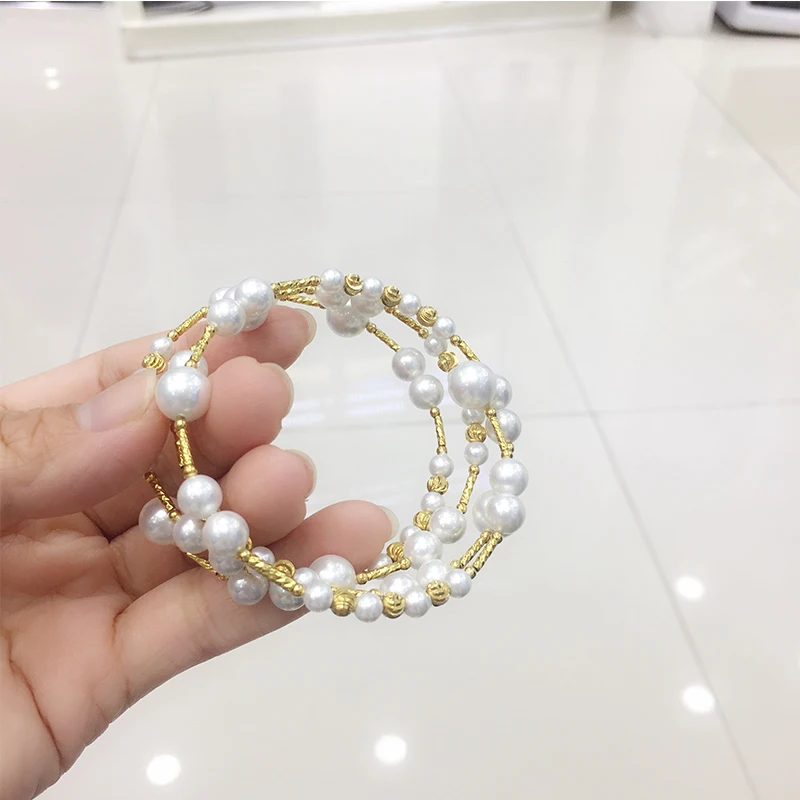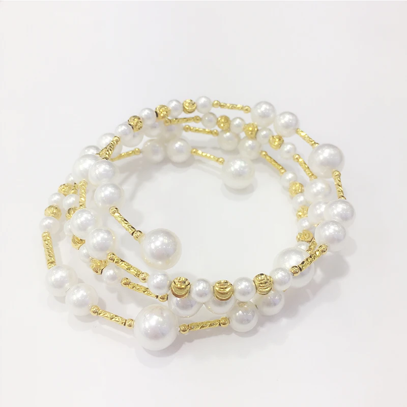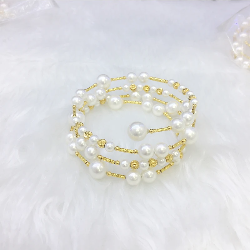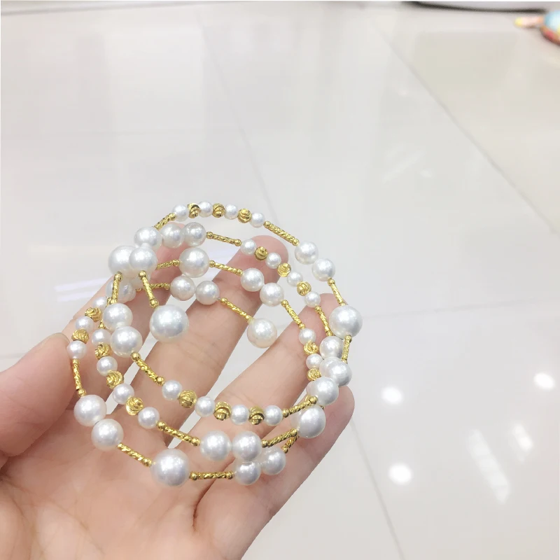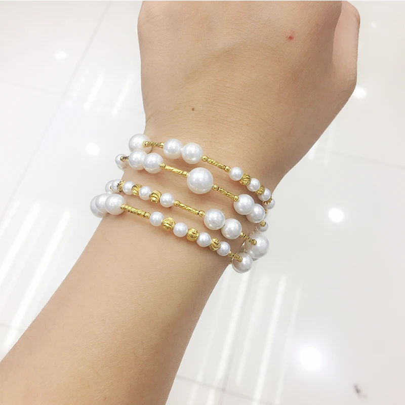 ANI 14K Roll Yellow Gold Pearl Bracelet Round Shaped Pearl Jewelry Fashion Bead White Pearl Bracelet for Women Gift