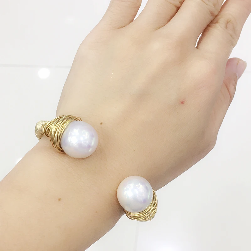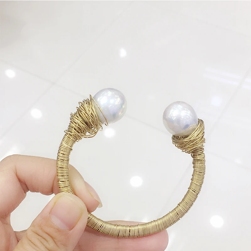ANI 14K Roll Yellow Gold Pearl Handmade Bracelet Natural Pearl Jewelry Fashion Vintage White Pearl Bracelet for Women