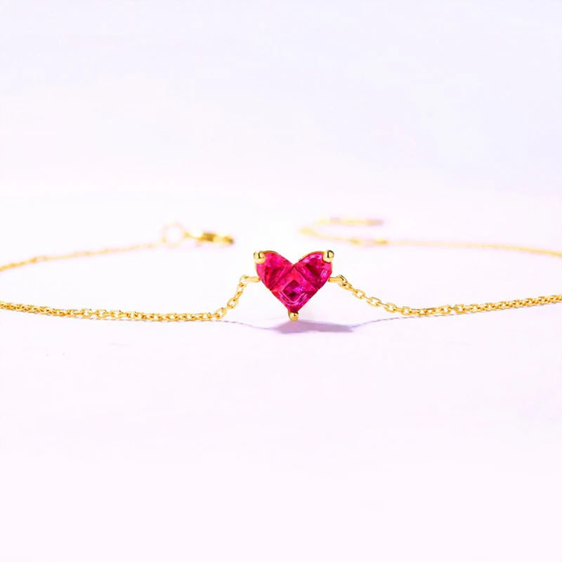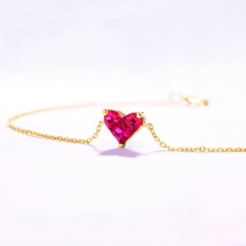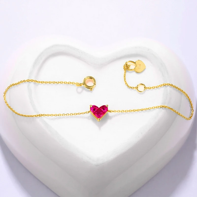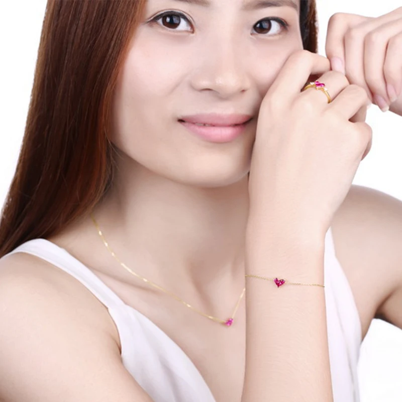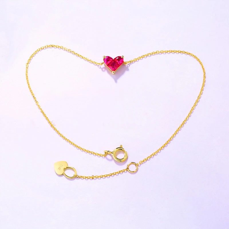 ANI 14K Yellow Gold Women Bracelet Heart Shape Red Corundum Fine Gemstone Jewelry for Women Romantic Engagement Bracelet Gift