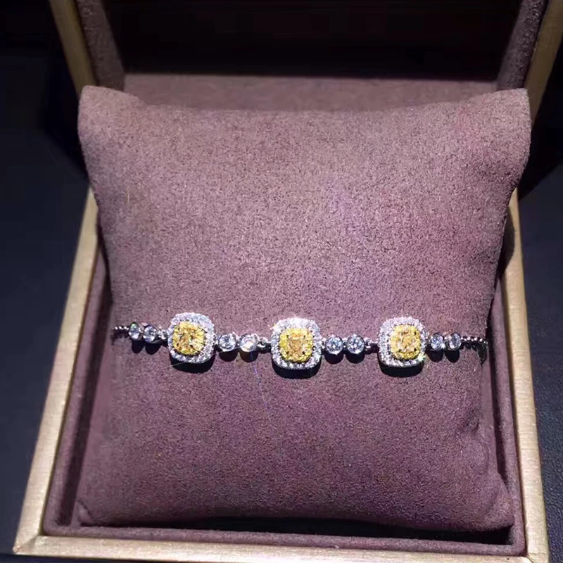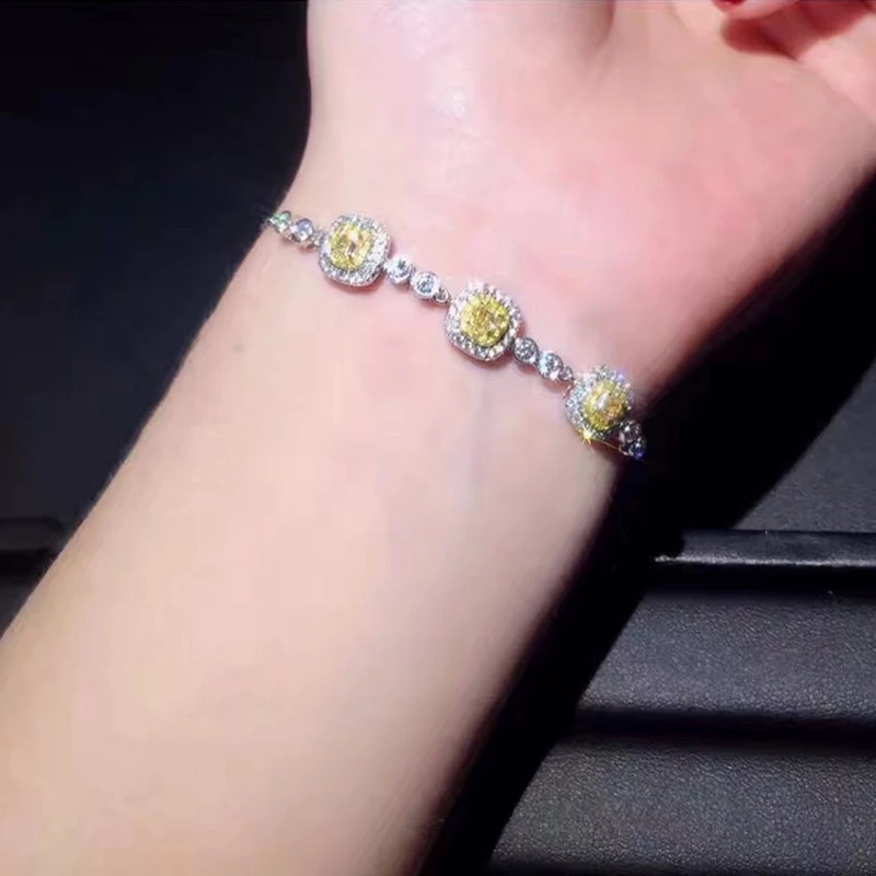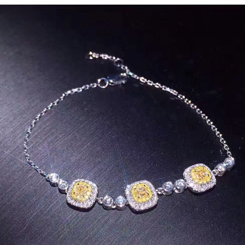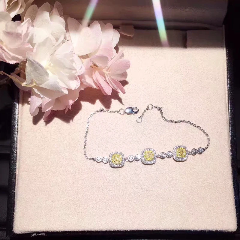 ANI 18K White Gold (AU750) Bracelet Certified 0.57 Carat H/SI Natural Yellow Diamond Jewelry for Women Romantic Engagement Gift