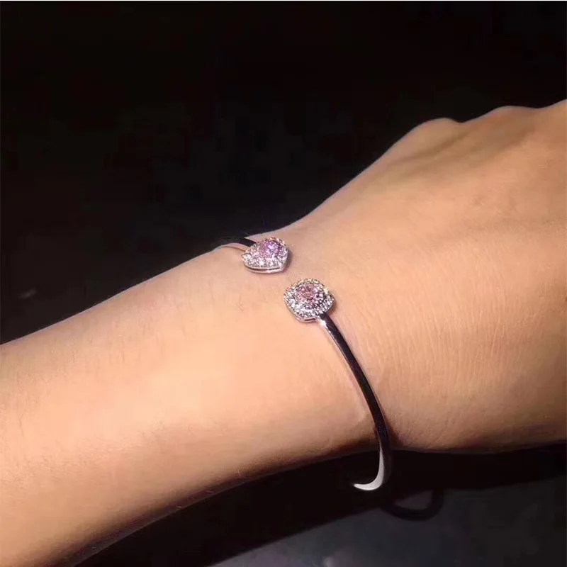 ANI 18K White Gold (AU750) Women Bracelet SI Certified 0.598 Carat Real Natural Pink Diamond Jewelry Heart Shape Halo Bracelet