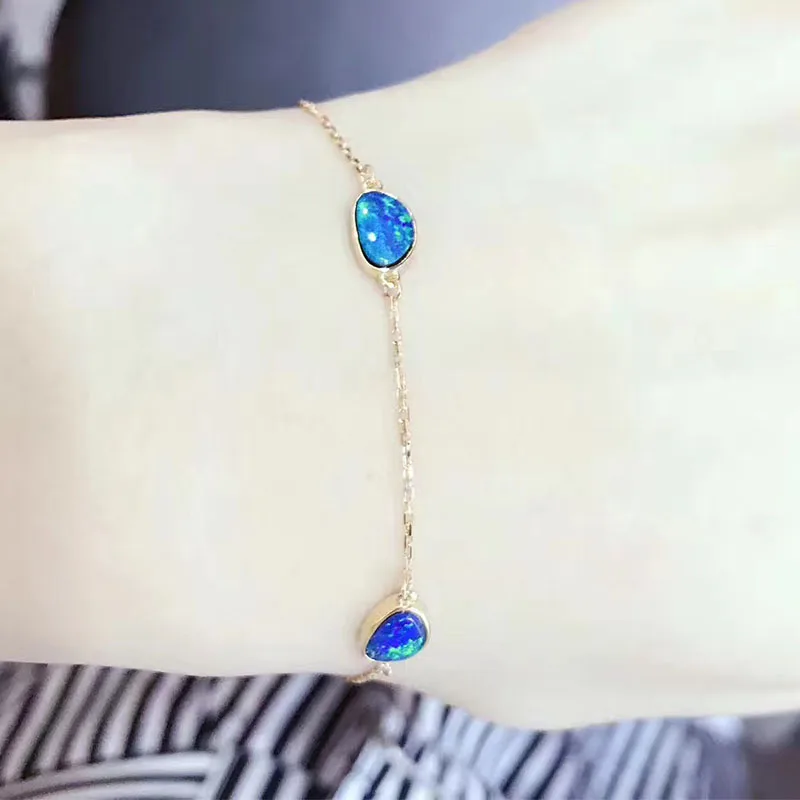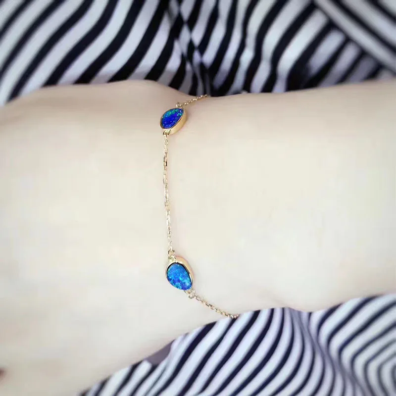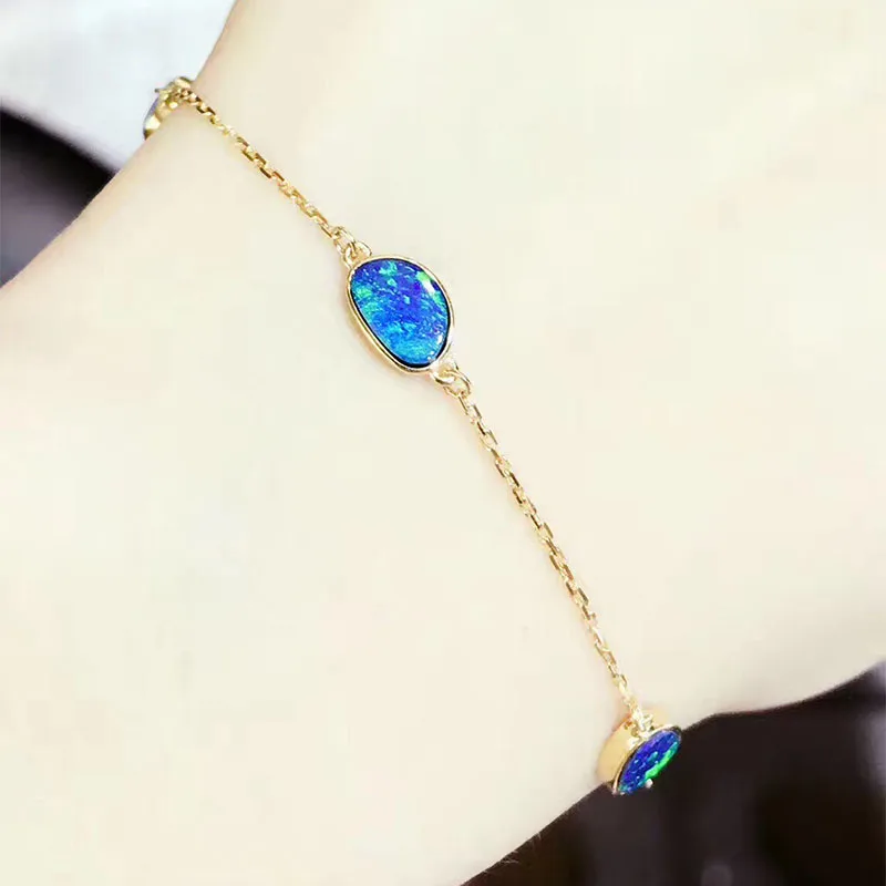 ANI 18K Yellow Gold Fahshion Women Bracelet Natural Opal Fine Color Gemstone Jewelry for Women Romantic Engagement Bracelet Gift