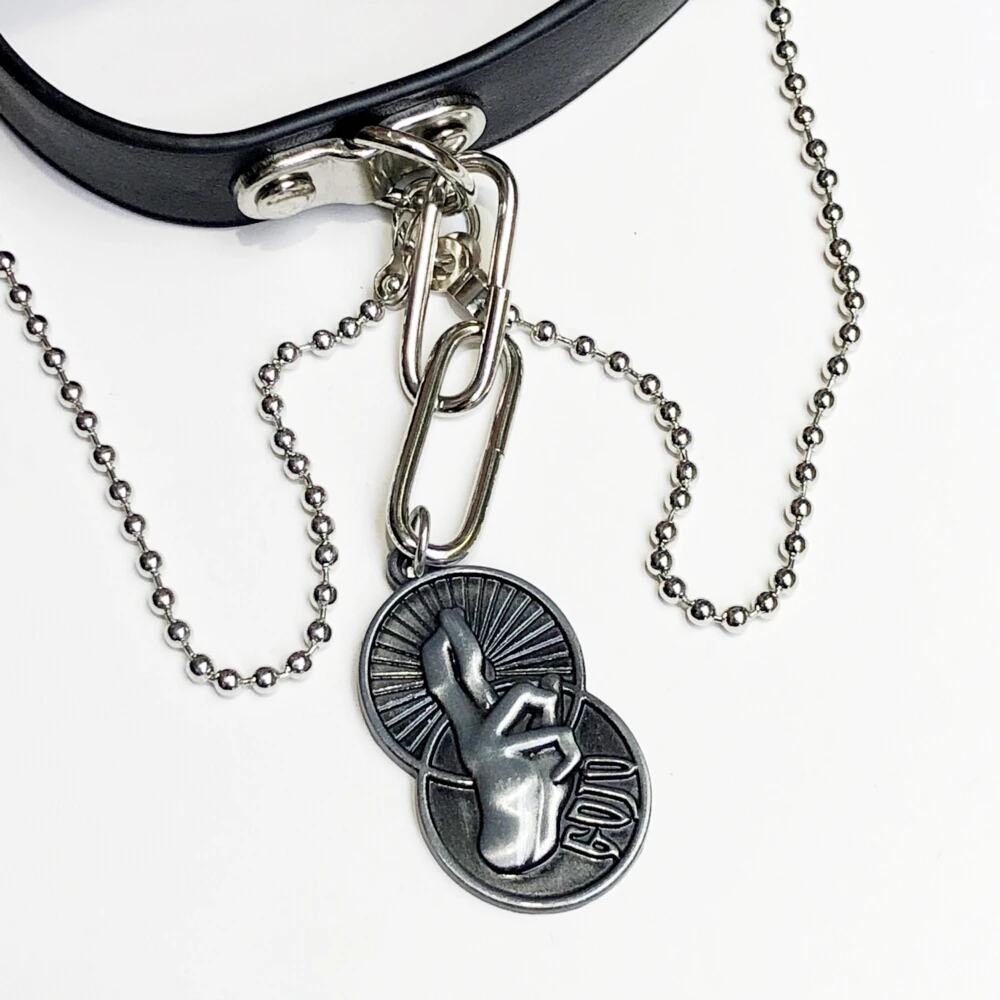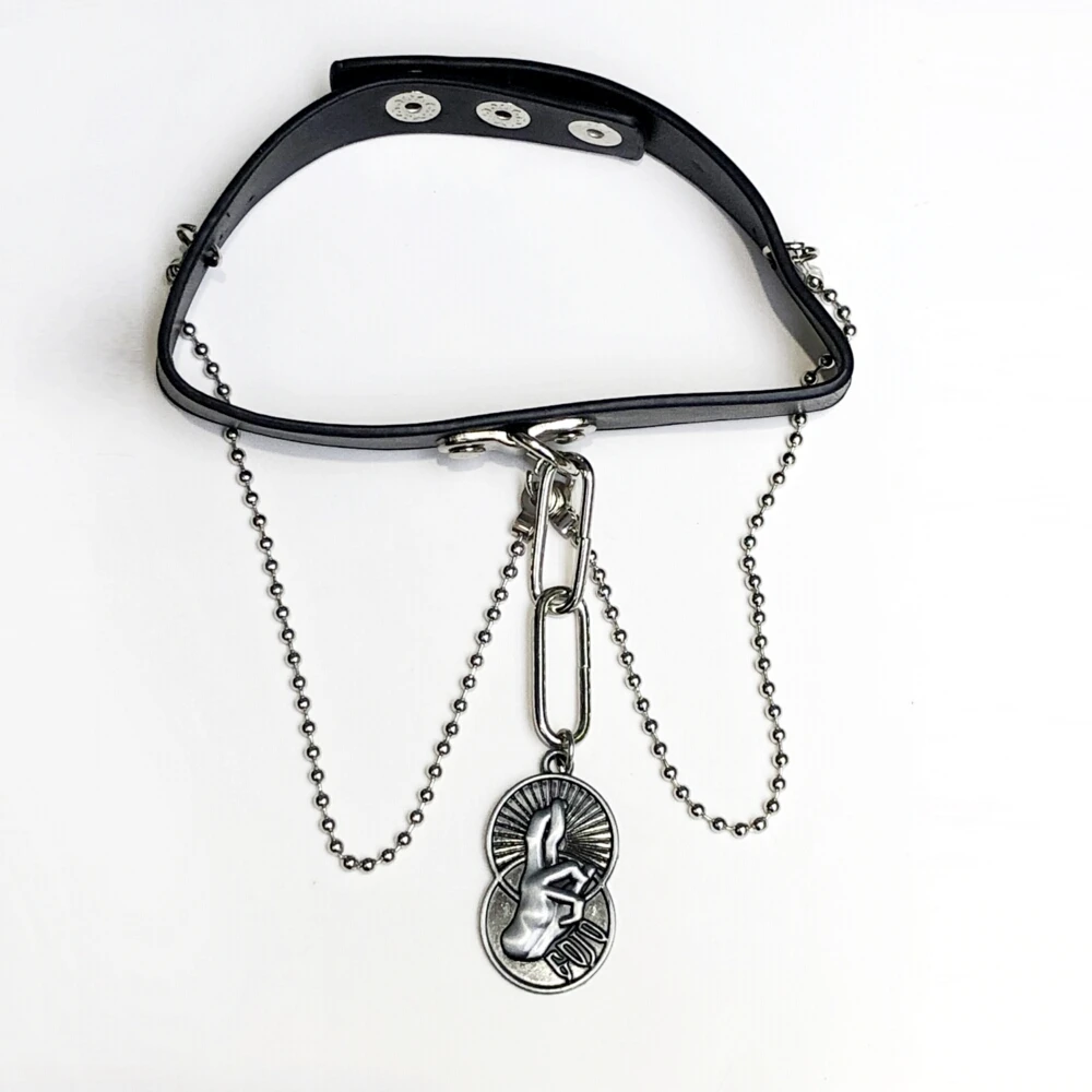 Anime Jujutsu Kaisen Gojo Satoru Cosplay metal Figure Pendant Black PU Chokers chain accessories Necklace
