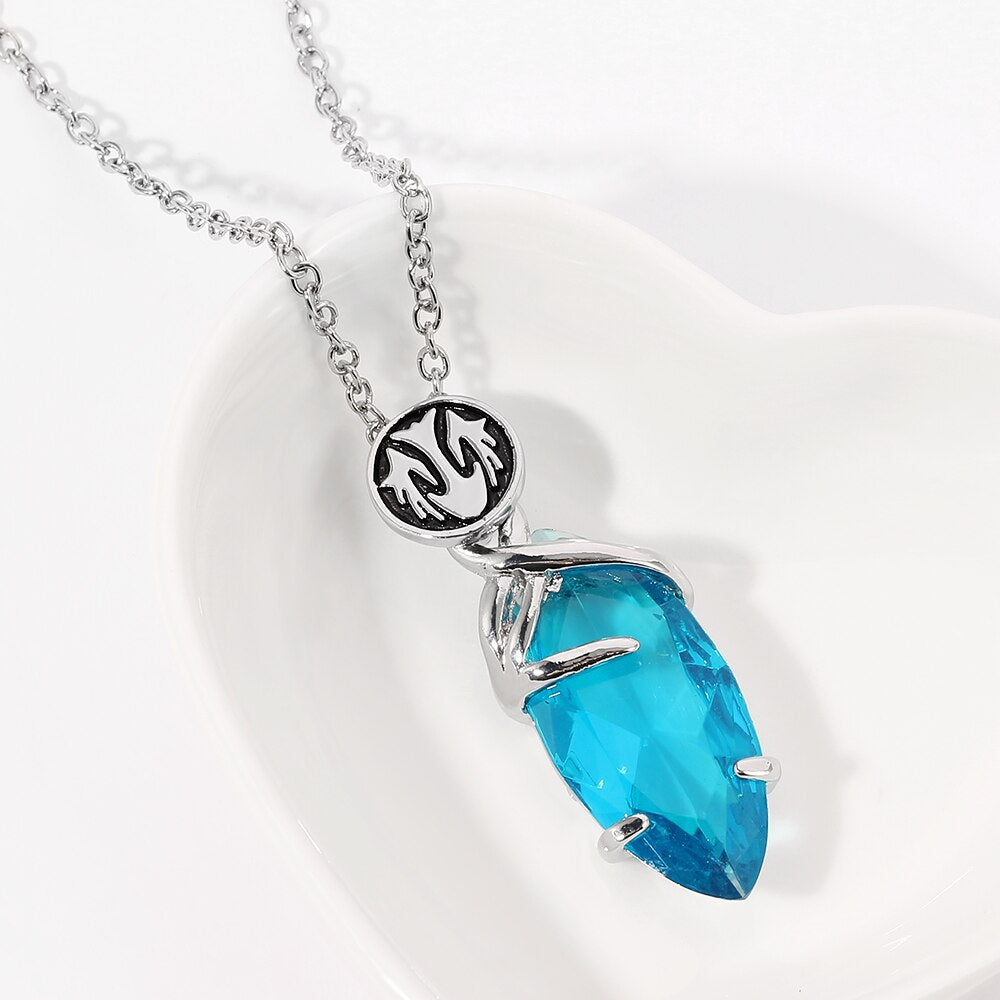 Anime series final fantasy blue Big Crystal Pendant Necklace cosplay Jewelry Women men Accessories link Chain vintage Necklaces