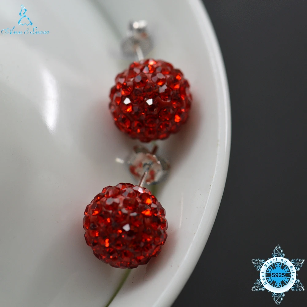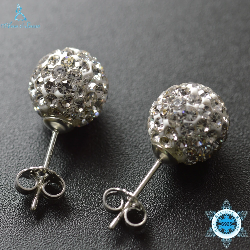 925 Sterling Silver Natural Handmade Designer Fine Jewelry Vintage Stud Shamballa Earrings for Women Brincos Bijoux