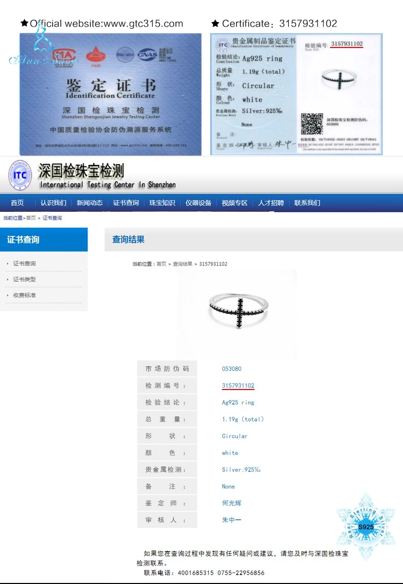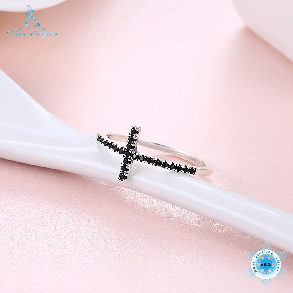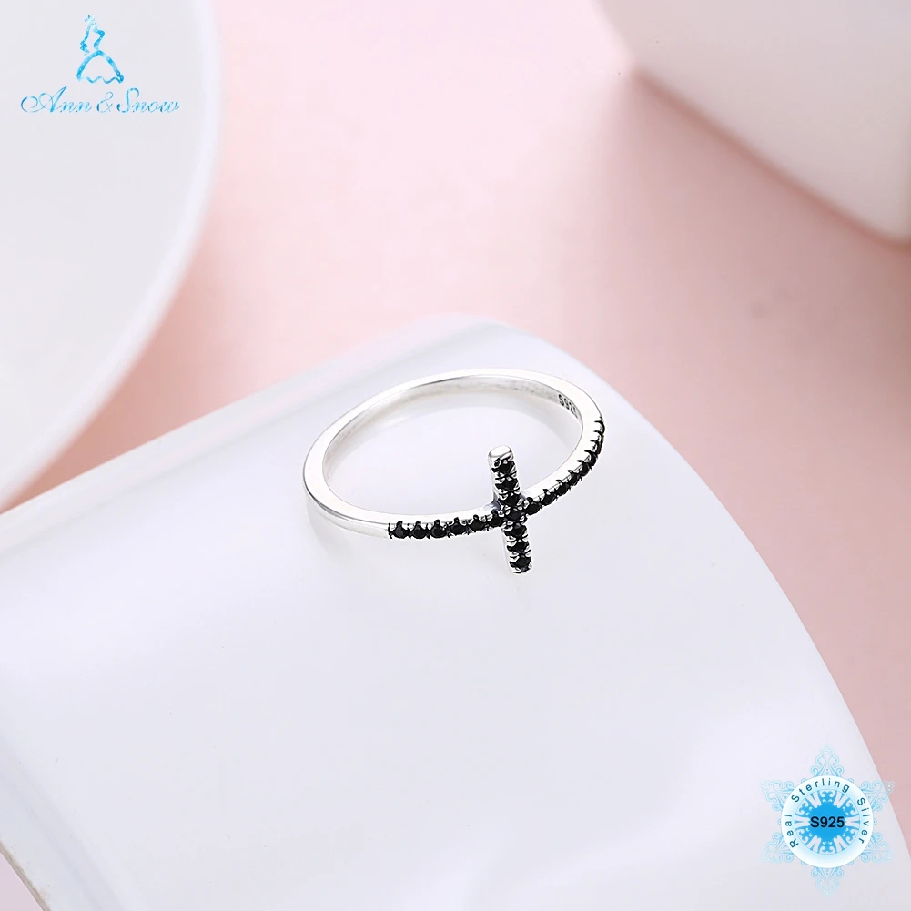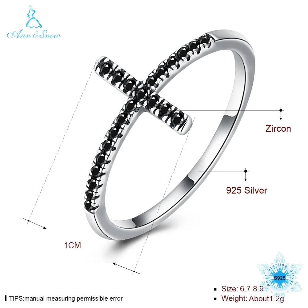 Ann&Snow Popular 925 Sterling Silver Faith Cross Shape Finger Rings for Women Black Clear CZ Sterling Silver Jewelry Gift