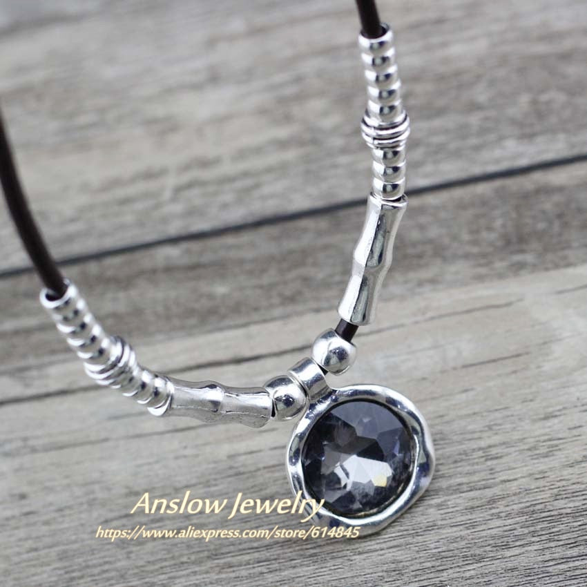 Anslow Leather Women Female Statement Necklace Pendant For Women Accessories Girlfriend Gift LOW0080AN