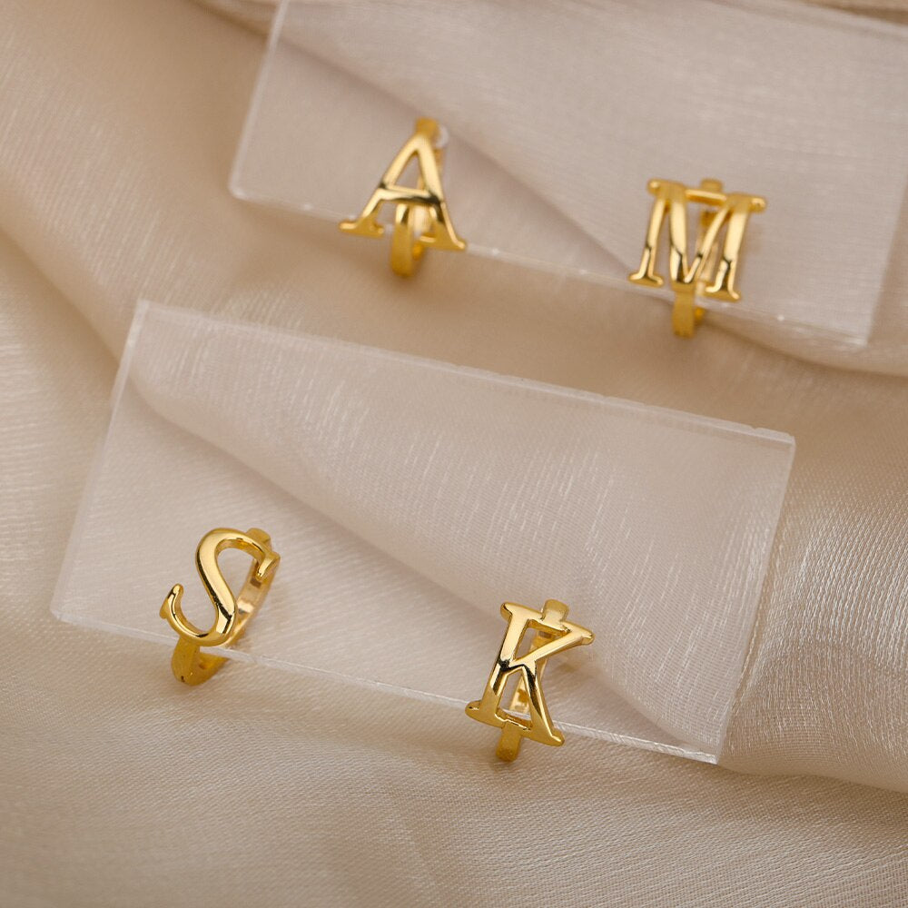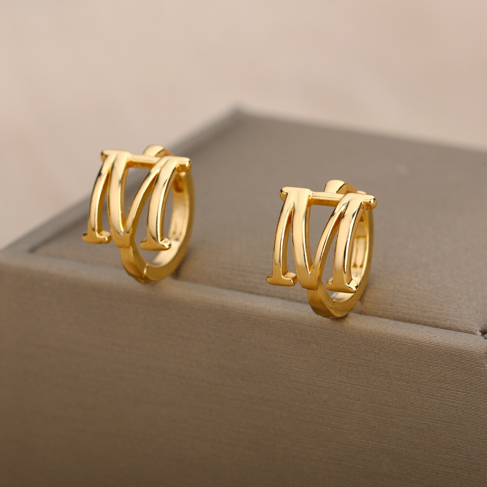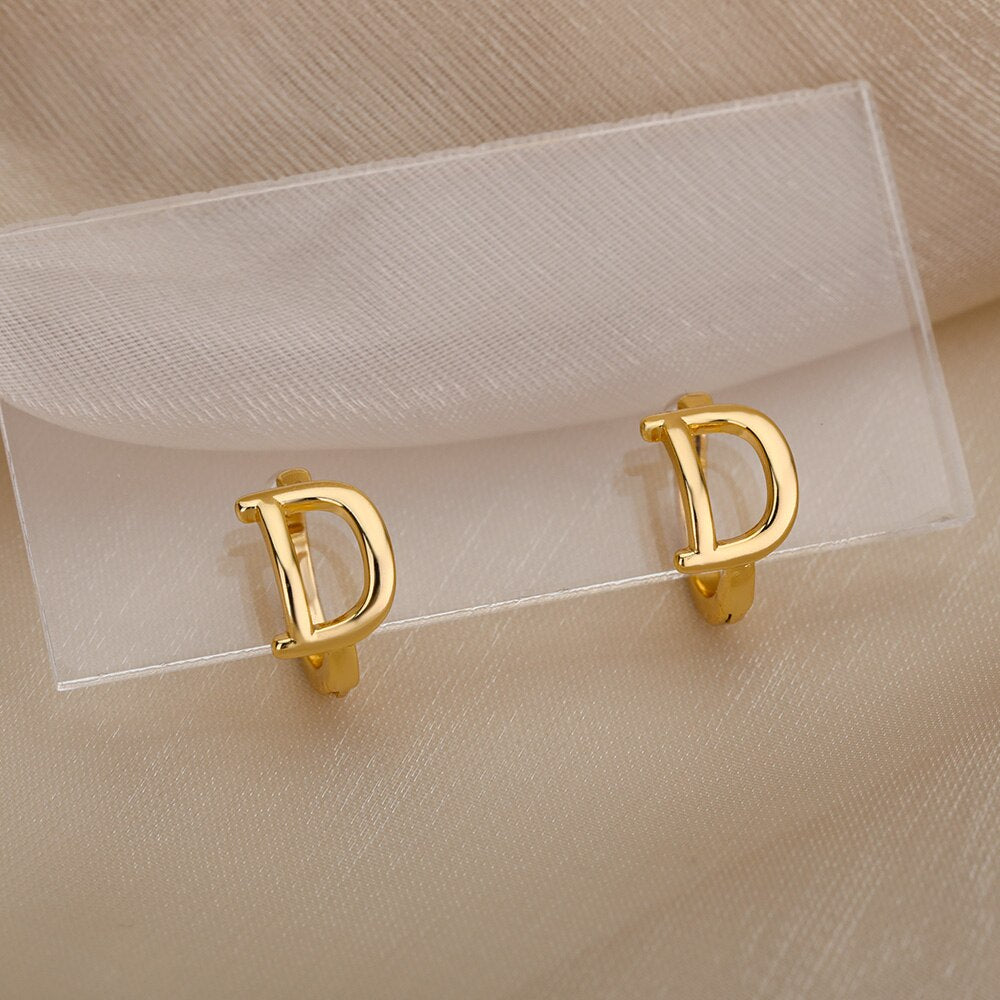 Anting-Anting Lingkaran Huruf Inisial Kecil untuk Wanita Anting-Anting Alfabet Warna Emas Baja Tahan Karat Hadiah Perhiasan Pasangan Pernikahan Tren 2023