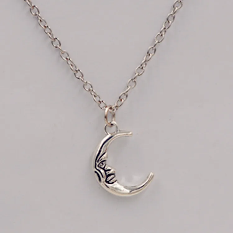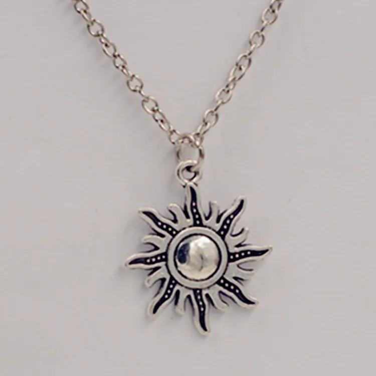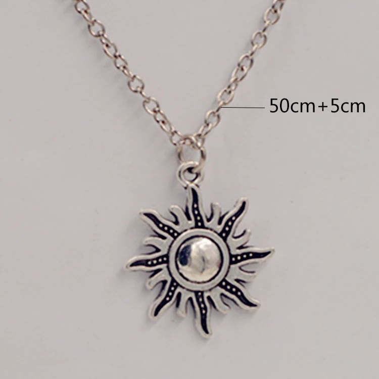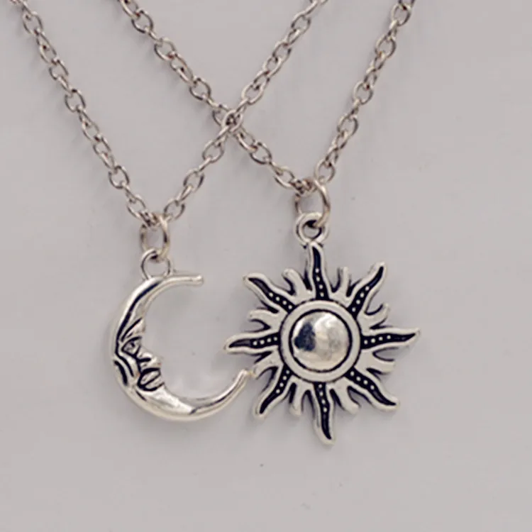Antique Silver Color Sun Moon Pendants & Necklaces Lovers Retro Short Chain Choker Necklace Friends Women Jewelry A754