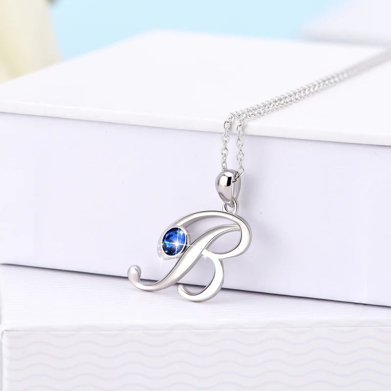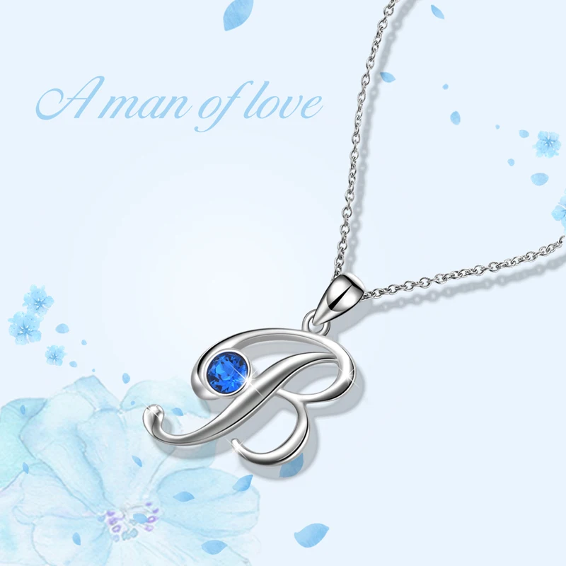 Best Letter B Pendant Necklace & Chain Blue Crystal Alphabet Choker Fine Jewelry For Women Girl Gift