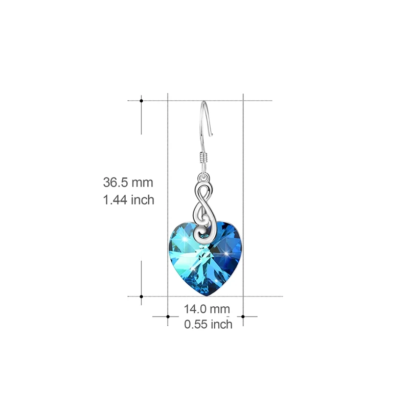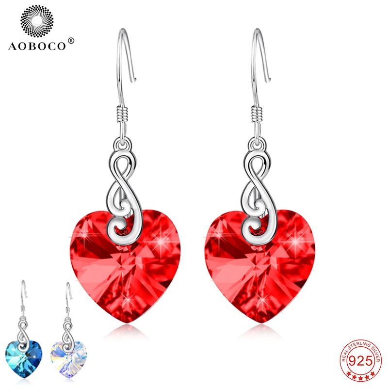 Elegant Big Blue Red Transparent Color Love Heart Drop Earrings Crystal Earring For Women Girl