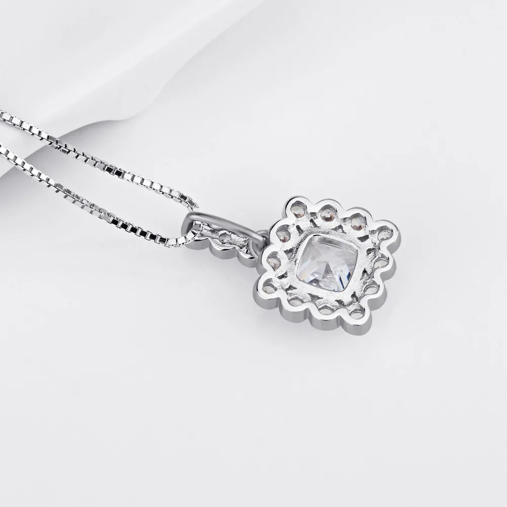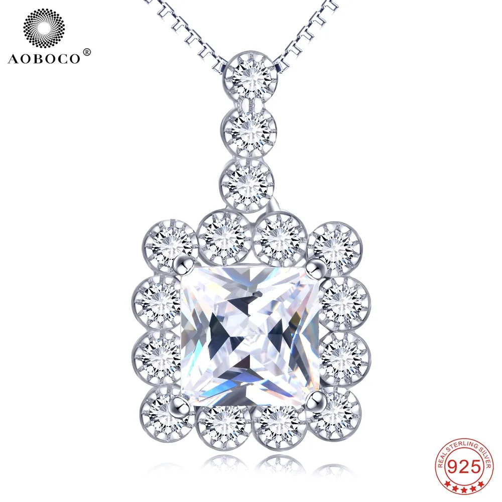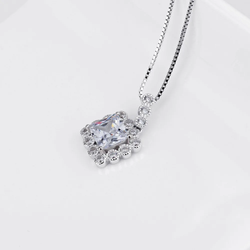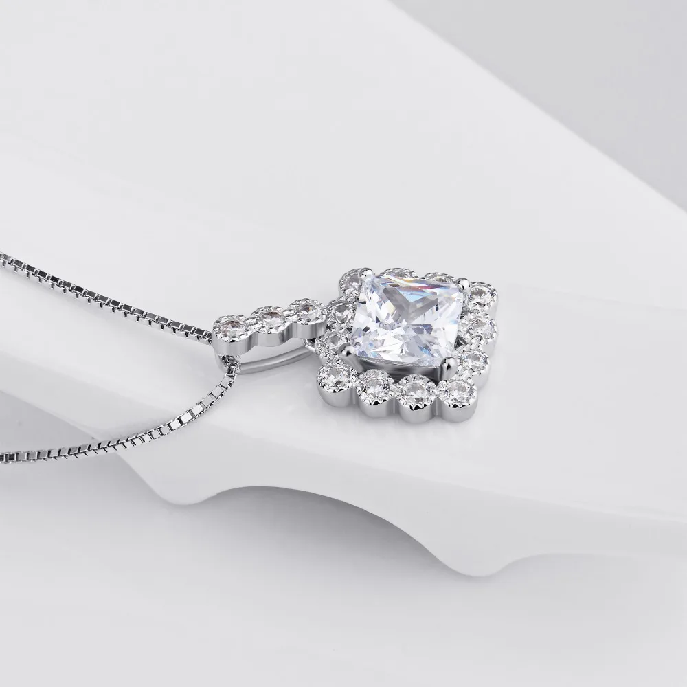 Necklace Women 925 Sterling Silver Geometric Square CZ Zirconia Pendants Necklaces Jewelry Wedding Love Gifts GNX13841