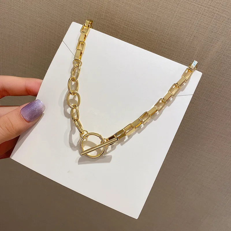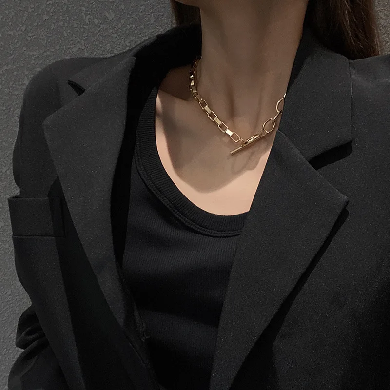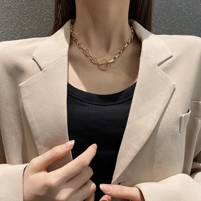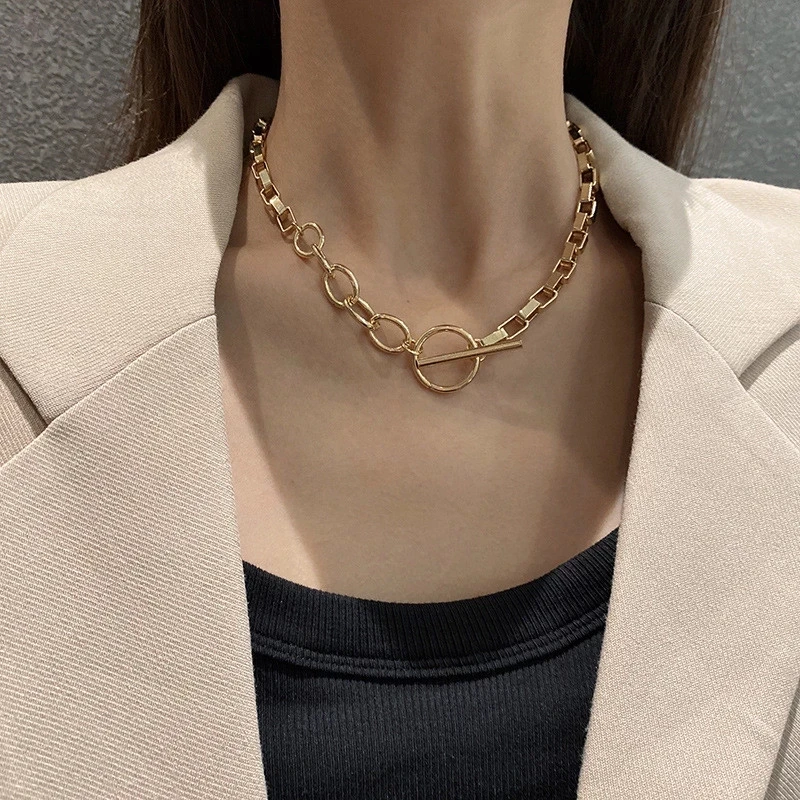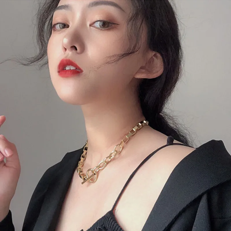 AOMU Exaggerated Gold Color Thick Chain Metal Necklace Hip Hop Sweater Chain for Women Trendy Jewelry Accessories Gifts Party