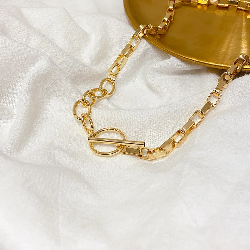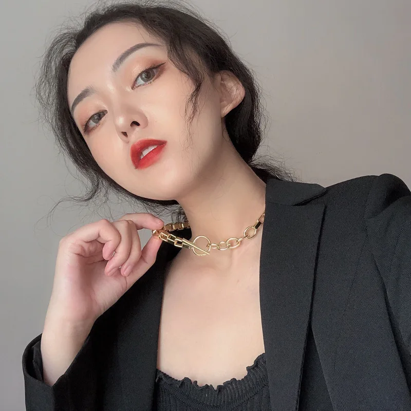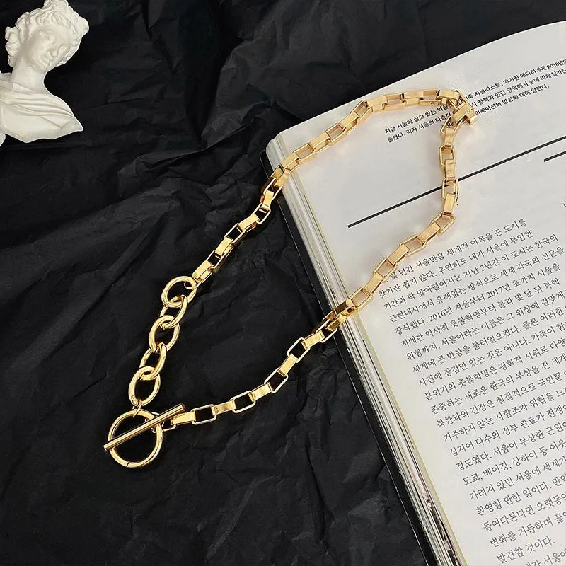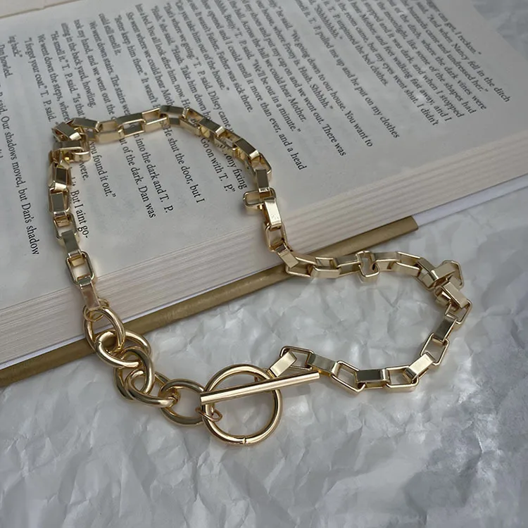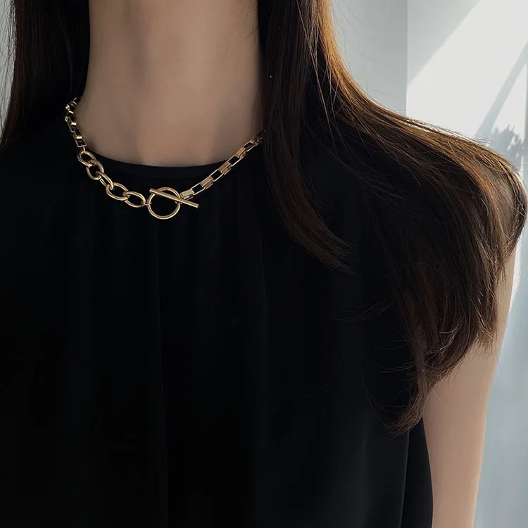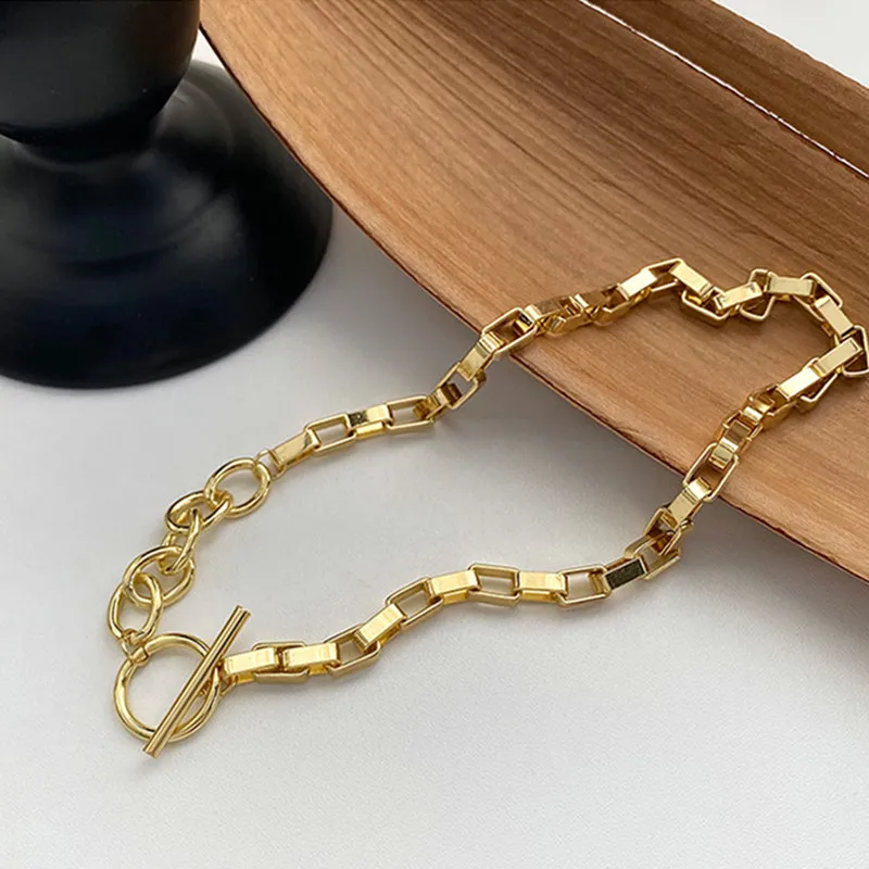 AOMU Exaggerated Gold Color Thick Chain Metal Necklace Hip Hop Sweater Chain for Women Trendy Jewelry Accessories Gifts Party
