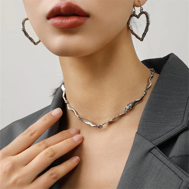 AOMU Summer Sweet Silver Color Metal Wave Clavicle Chain Irregular Geometric Hollow Cross Necklace for Women Party Accessories