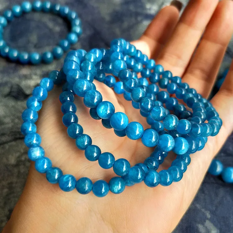 Apatite round blue 6-7mm bracelet 7.5inch beads nature AA