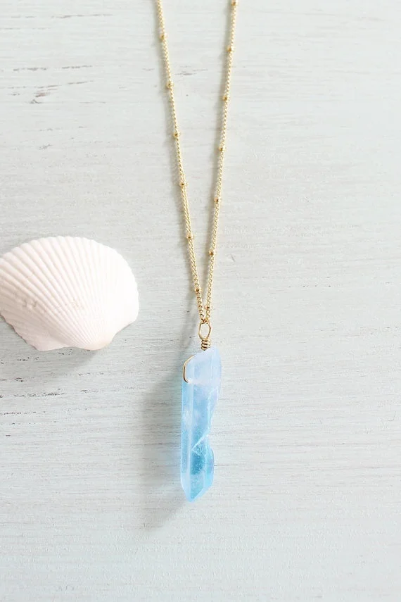Aqua Aura Mystic Quartz Point Necklace Sky Blue Crystal Necklace Aqua Rainbow Crystal Quartz Necklace