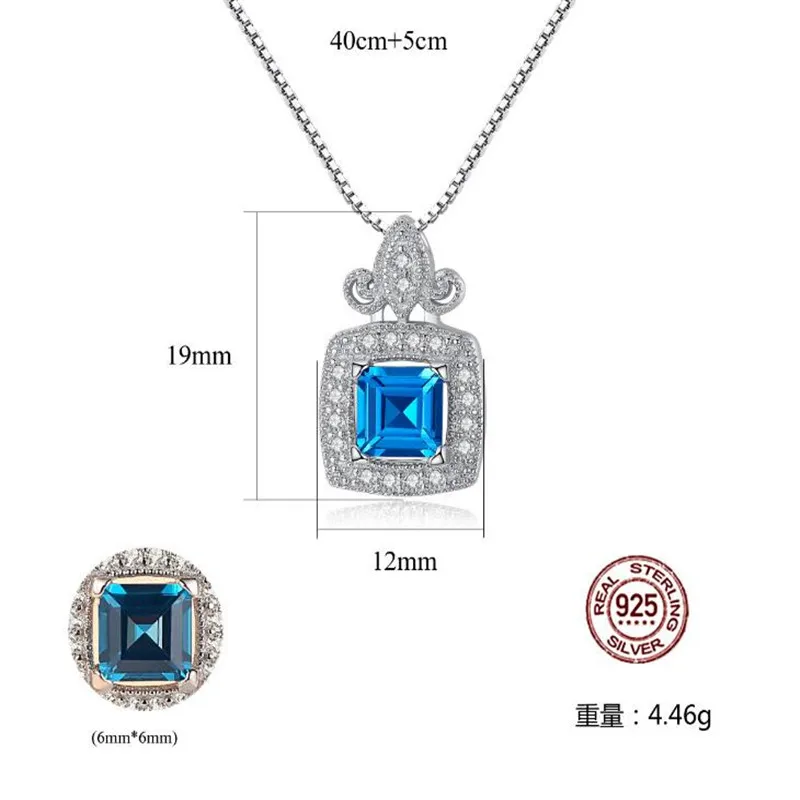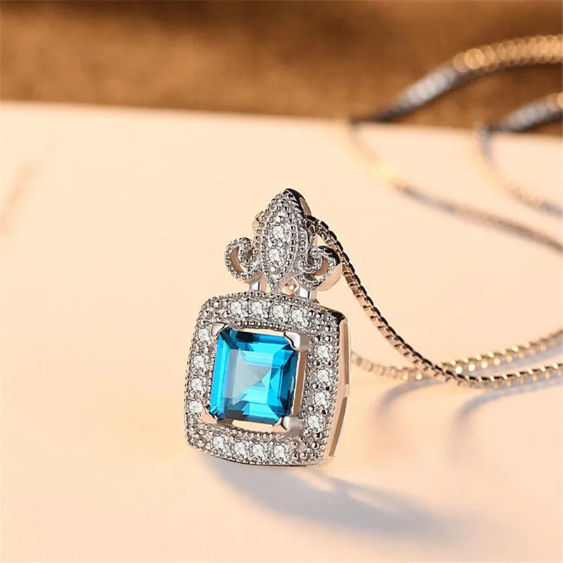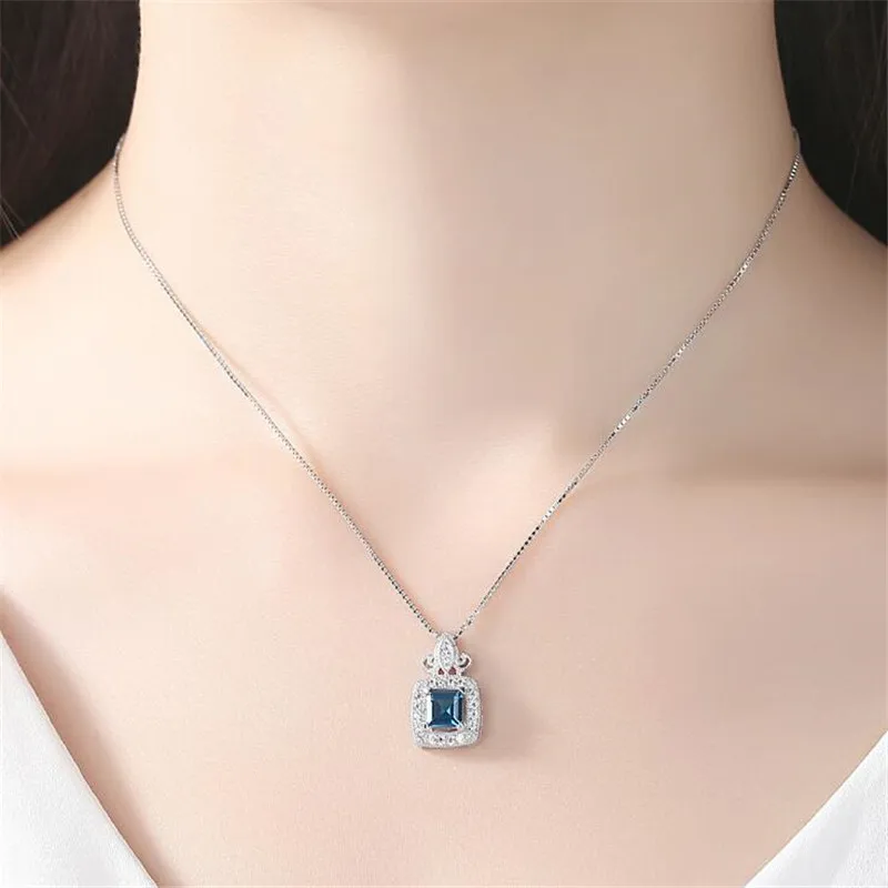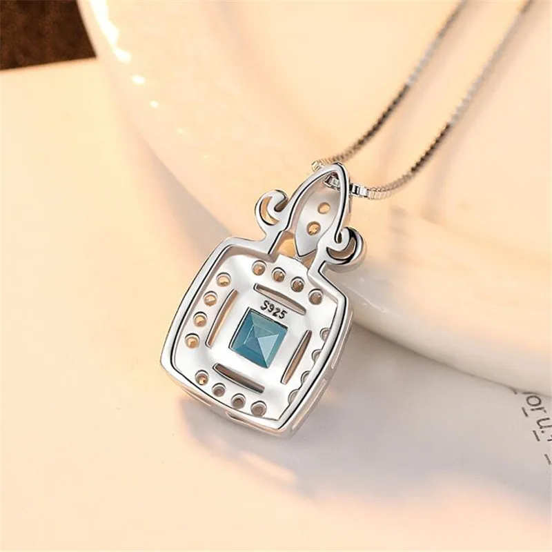 Aquamarine Jewelry Gem Stone Sky Blue Sapphire Pendant Necklace Solid 925 Sterling Silver Fashion Jewelry For Women