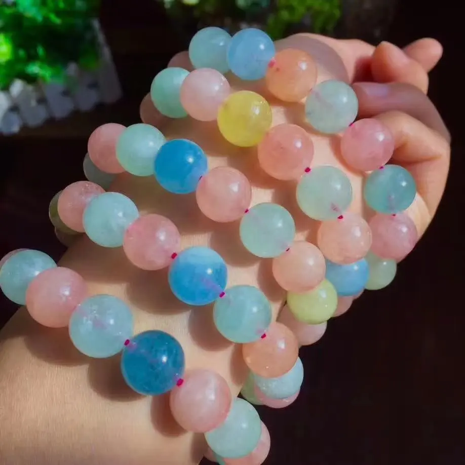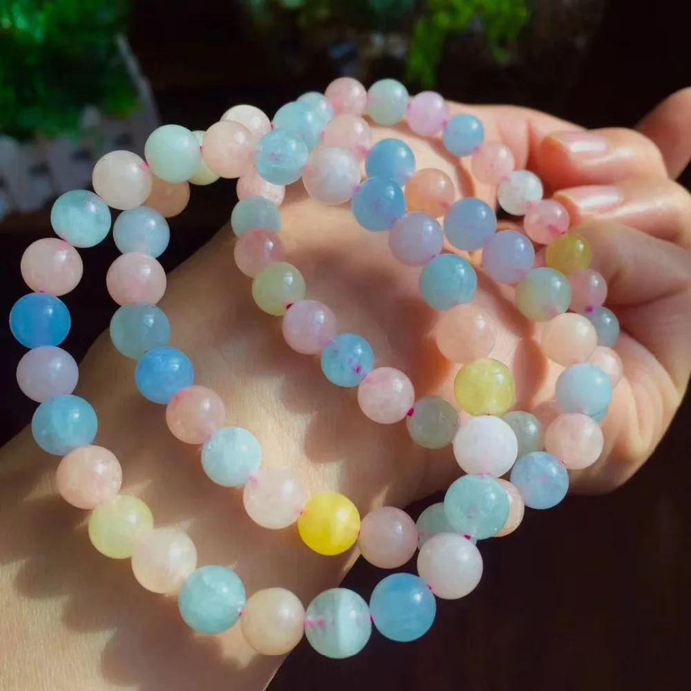aquamarine multicolor round 8/10/12mm bracelet 7.5inch beads nature handcraft nature beads