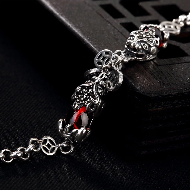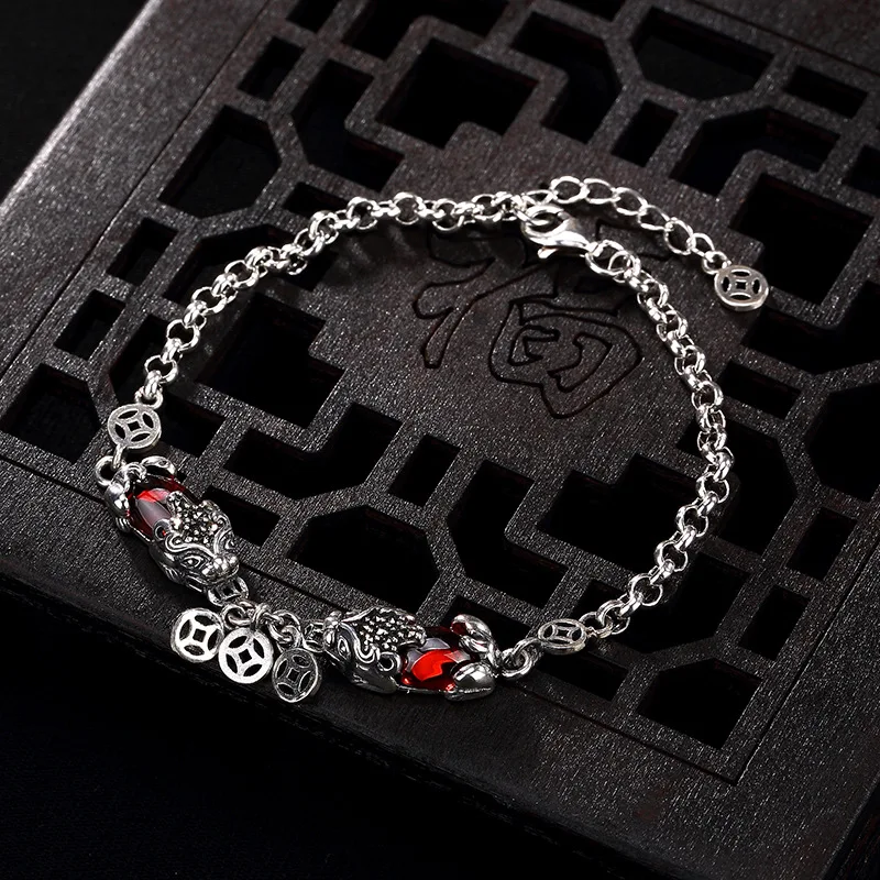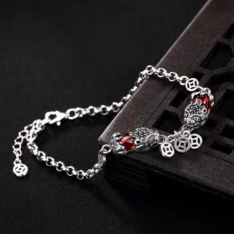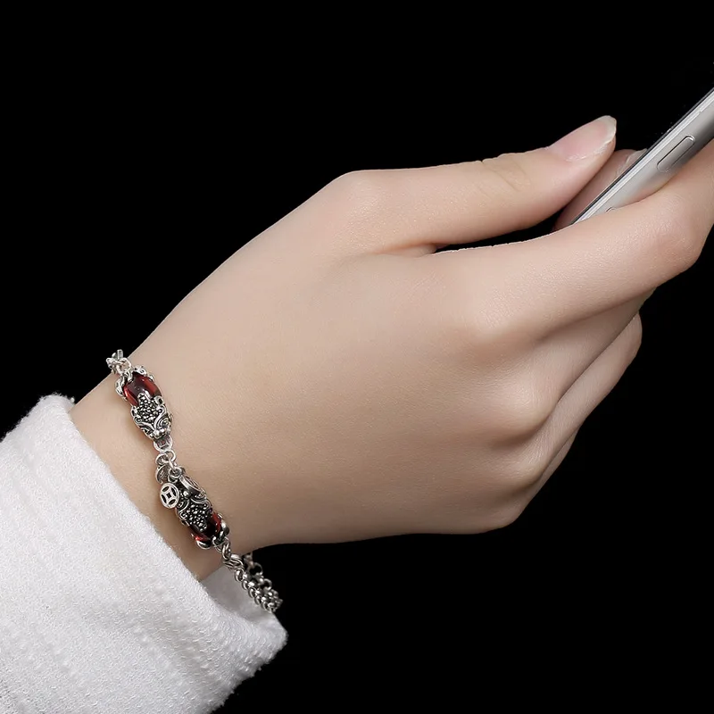 Armbanden Voor Vrouwen S925 Pure Silver, Antique Thai Mosaic Pomegranate Red, Fortune Two Ladies' High-end Bracelet Wholesale