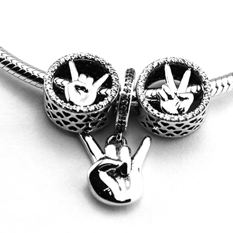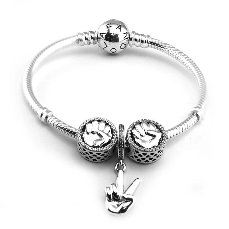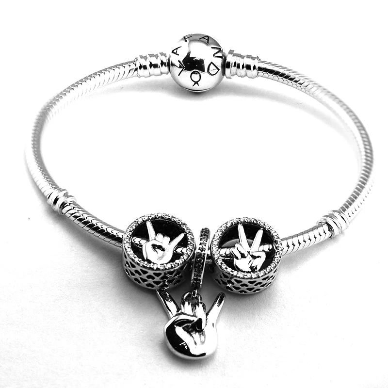 Around Bracelets with 3pcs Beads Charms in set 100% 925 Sterling-Silver-Jewelry